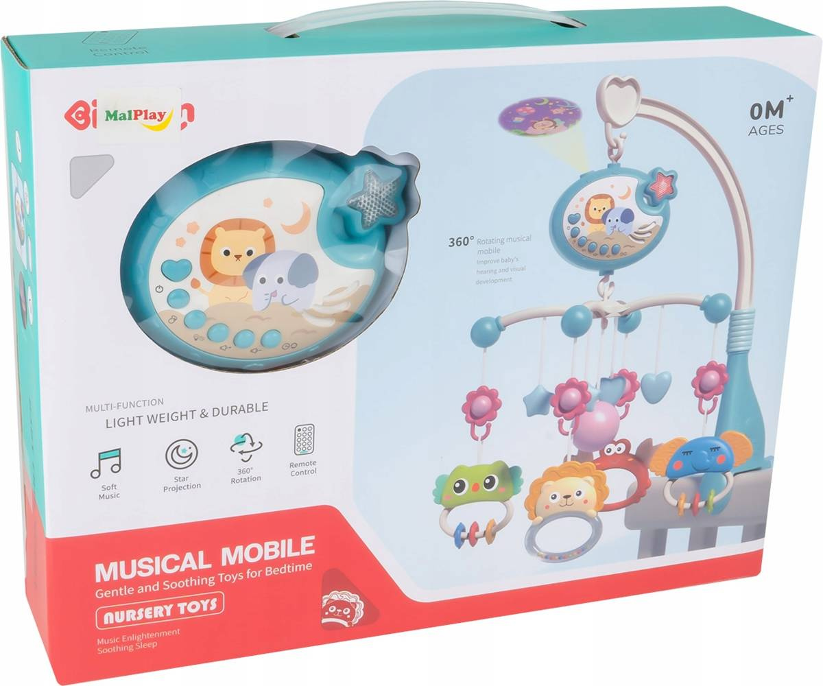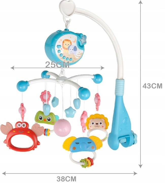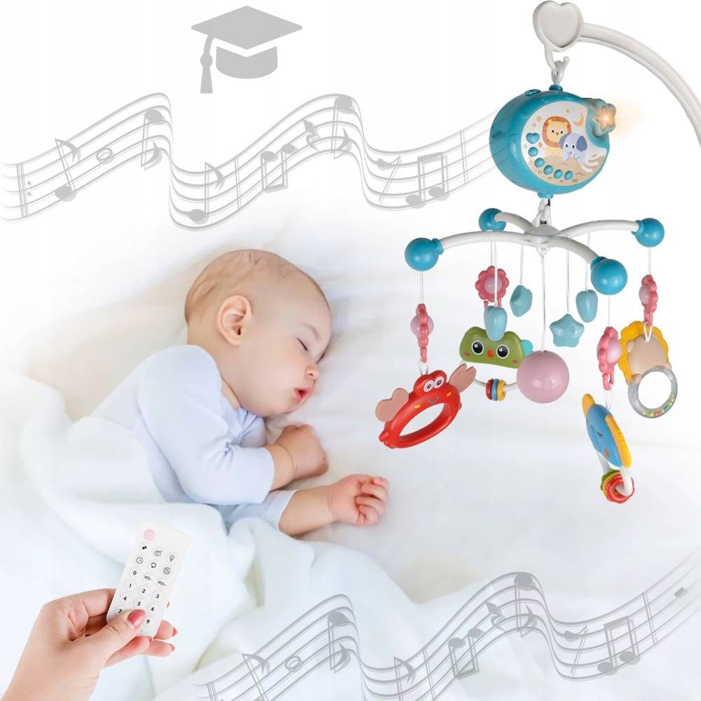 Dzięki delikatnej muzyce i kręcącym się zabawkom uspokaja dziecko oraz ułatwia zasypianie.