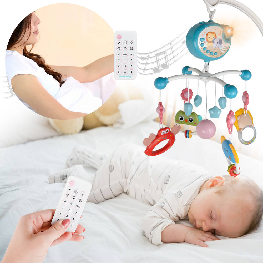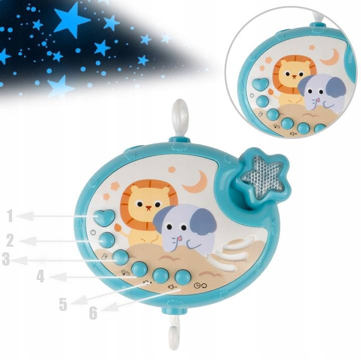 Karuzelka muzyczna pozytywka do łóżeczka sterowana pilotem. Nasza karuzelka obraca się o 360° i posiada wiele dźwięków, melodii, a także efekty świetlne - projektor.