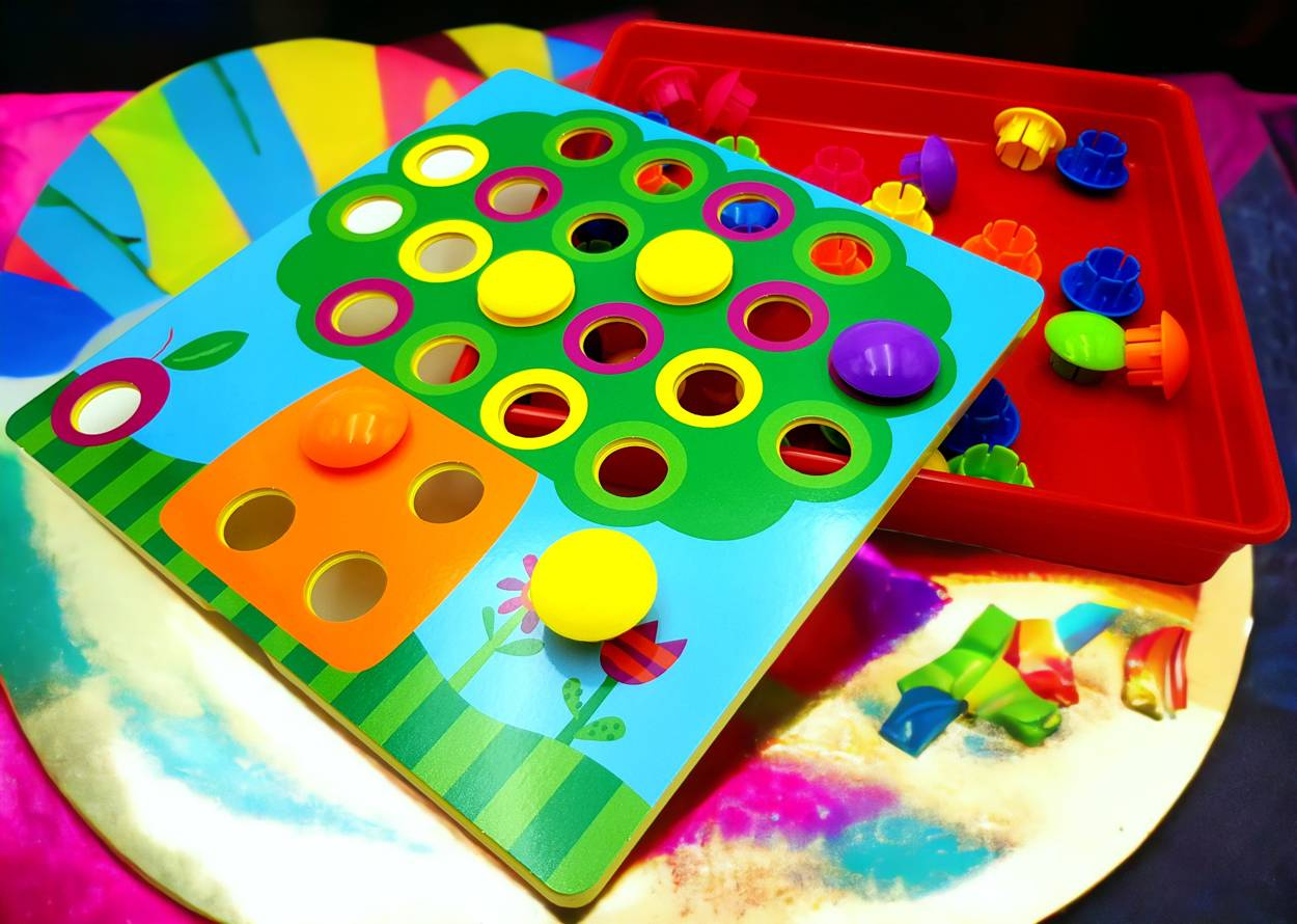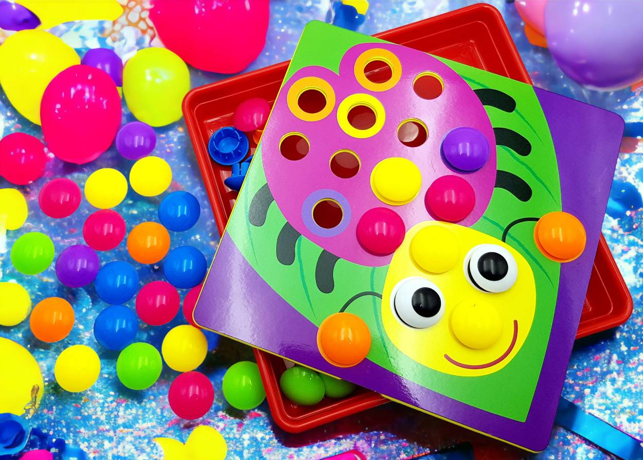 Kolorowe pinezki wspierają rozwój poprzez zabawę.
