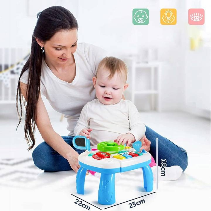 Stolik składa się z przyjemnych dla oka kolorów, a także świecących i grających elementów, rozwinie zmysł wzroku i słuchu maluszka.