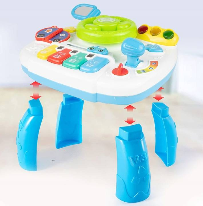 Nasz interaktywny stolik posiada wiele ruchomych elementów i doskonale rozwija oraz poprawia zdolności manualne i motoryczne dziecka.