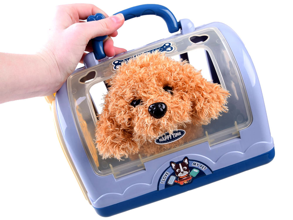 Zestaw weterynarz z miniaturowym, karmelowym, uroczym pieskiem pudelkiem to zabawka dla każdego małego dziecka, które chce zostać weterynarzem. Zestaw wyposażony w przenośny pojemnik dla pieska i akcesoria medyczne dla weterynarza, sprosta wymaganiom małego weterynarza podczas udzielania pomocy medycznej. Nie od dziś wiadomo iż dziecko poprzez zabawę uczy się najwięcej, a taki zestaw zadba o to aby każdy mały właściciel dbał o swojego pupila.