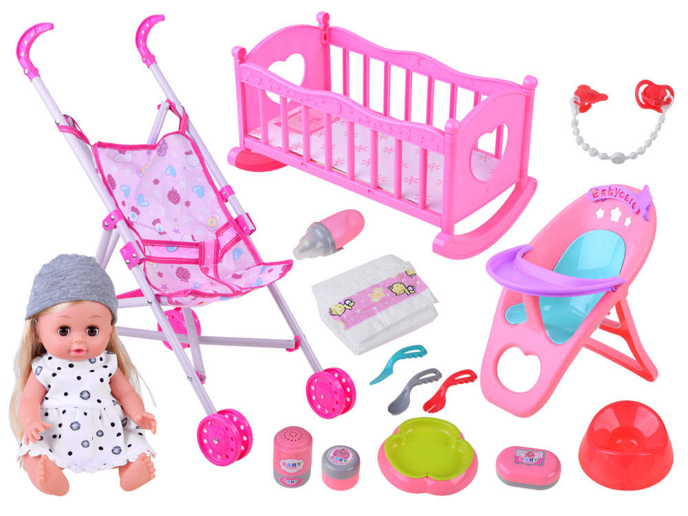- zestaw dla opiekunki lalka kołyska krzesełko wózek akcesoria dla lalki bobasa