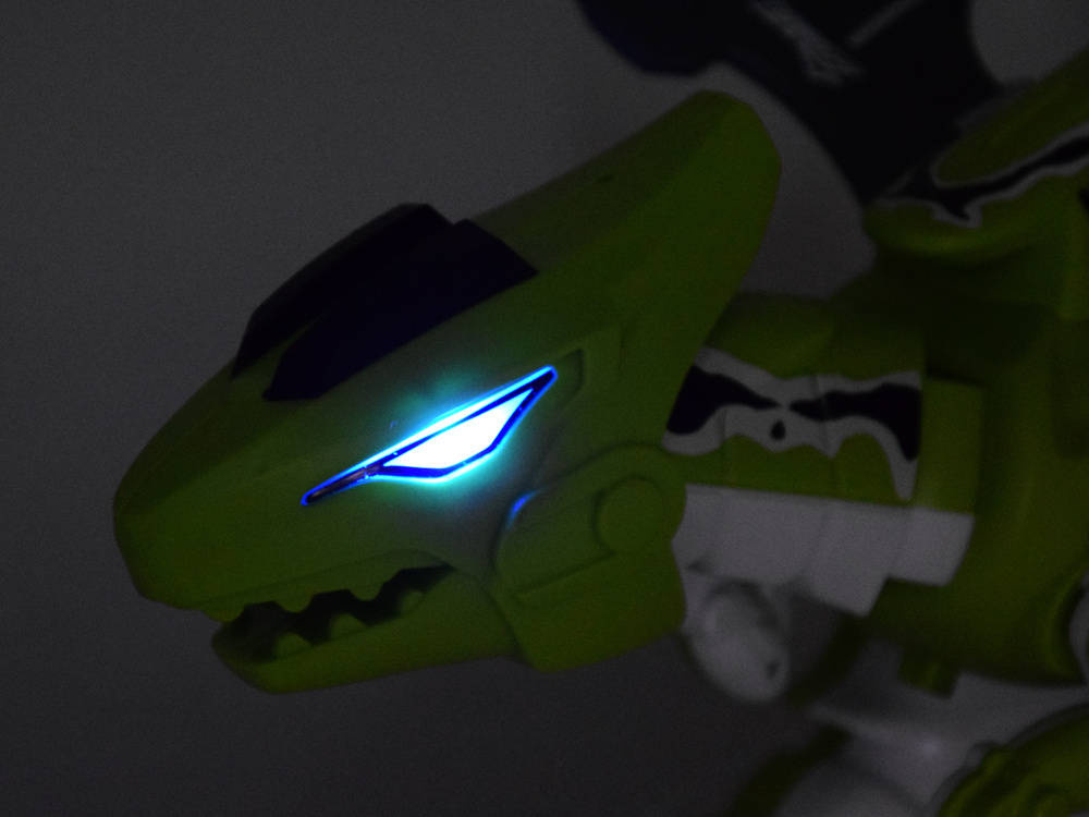 Jego oczy świecą, a dodatkowo odtwarza muzykę oraz wydaje dźwięki syreny i robotów.