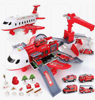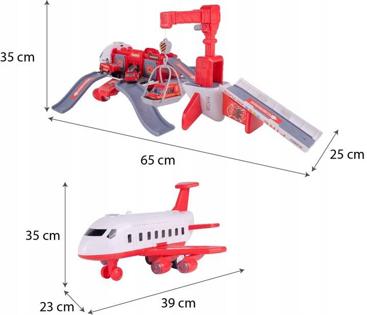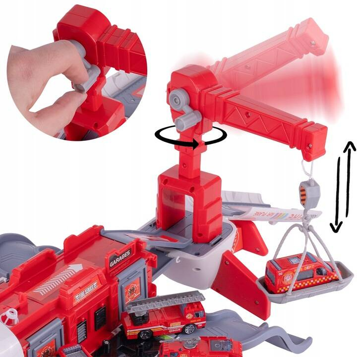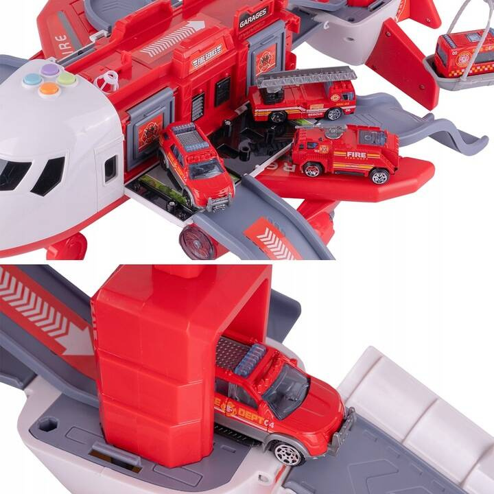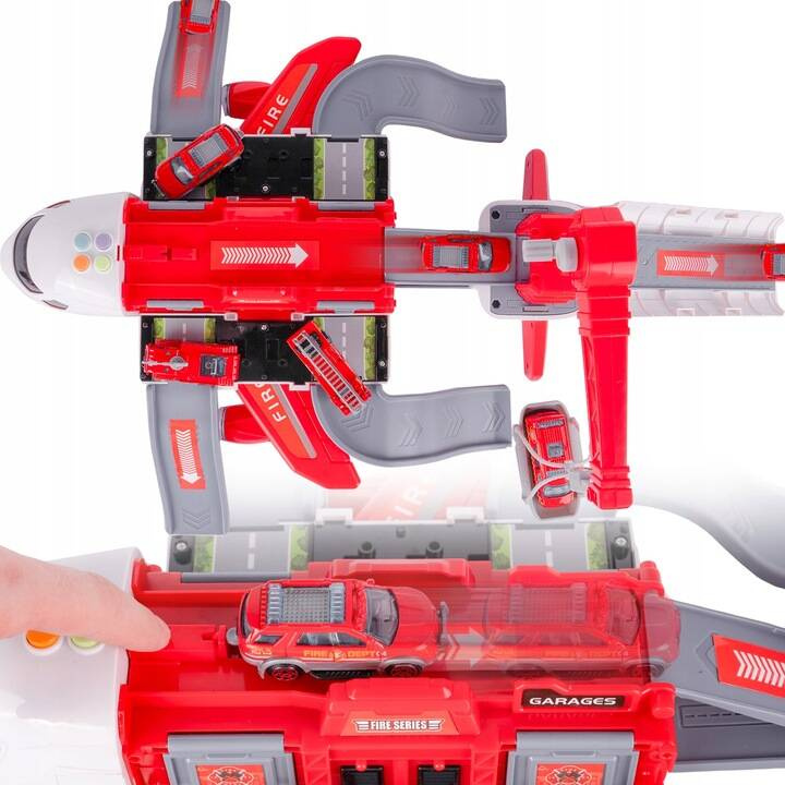 Samolot strażacki wyrusza na pomoc. Posiada własny napęd "pull and release". Wystarczy pociągnąć do tyłu i puścić a samolot popędzi po pasie startowym. Nie zbrakło także odgłosów prawdziwych silników oraz efektów świetlnych.