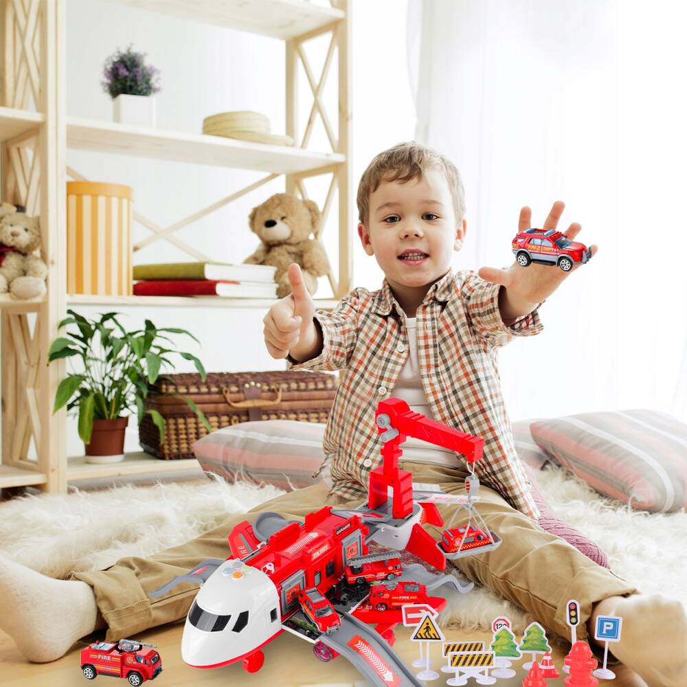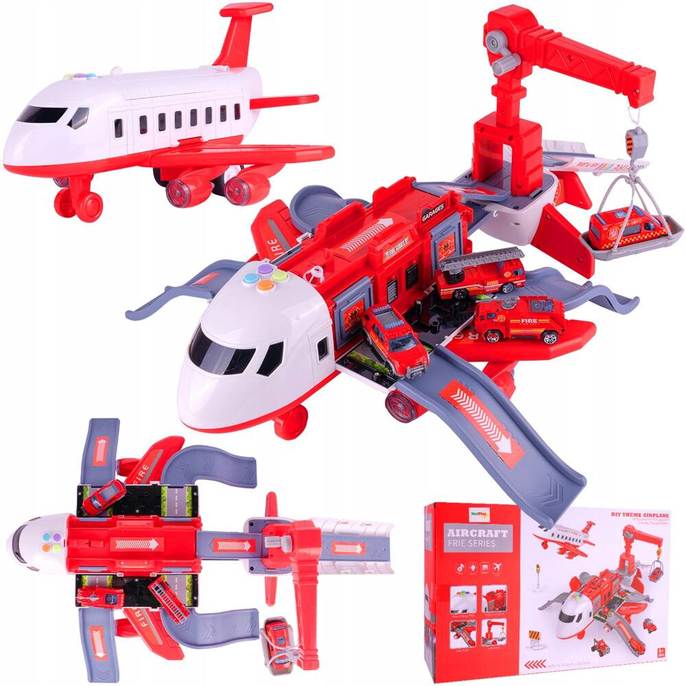 Samolot z rozkładanym parkingiem, ruchomym dźwigiem i efektami świetlnymi i muzycznymi
