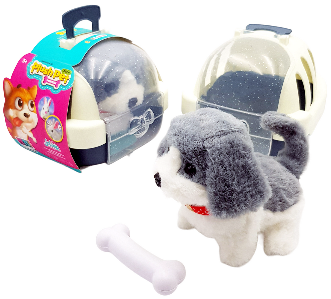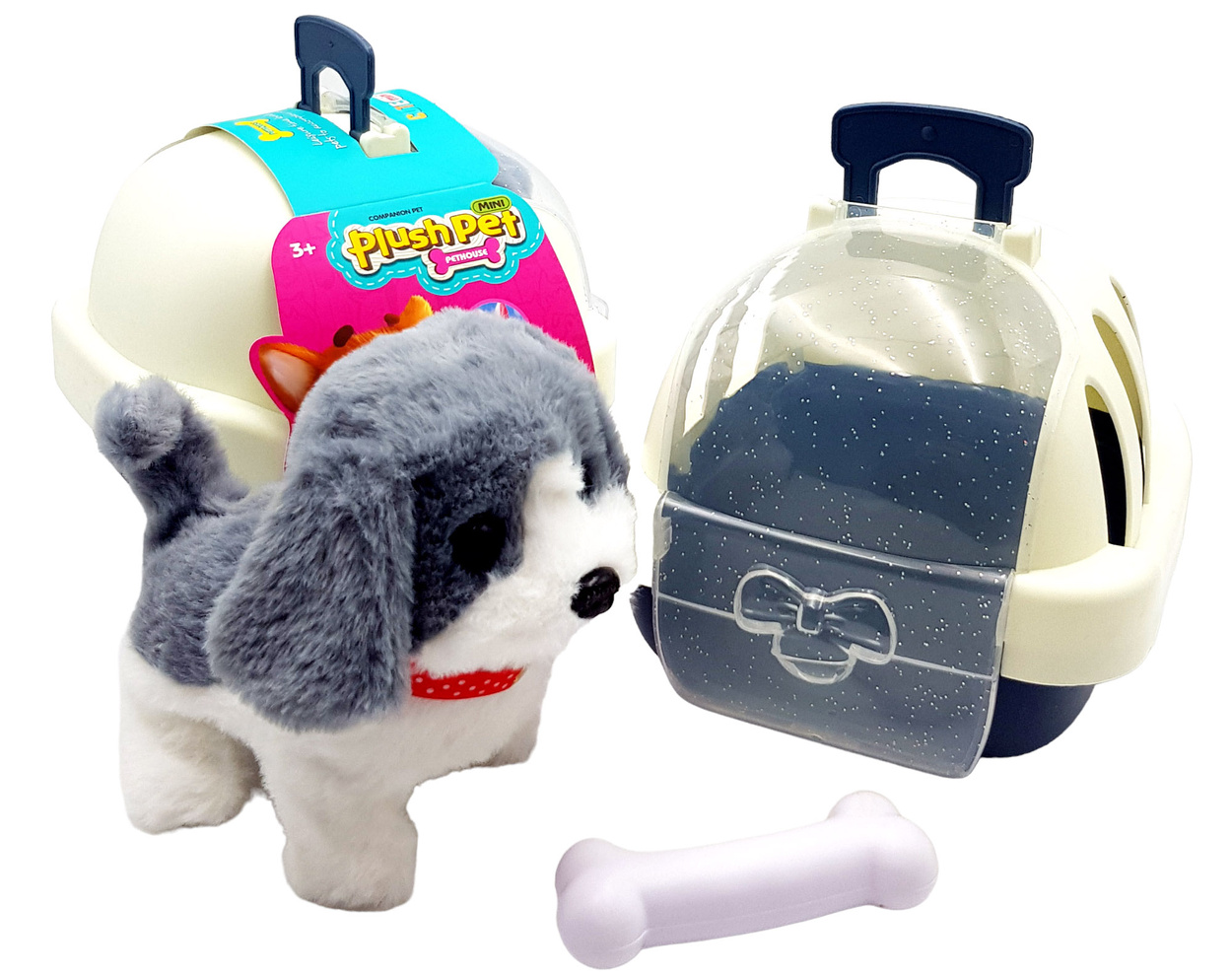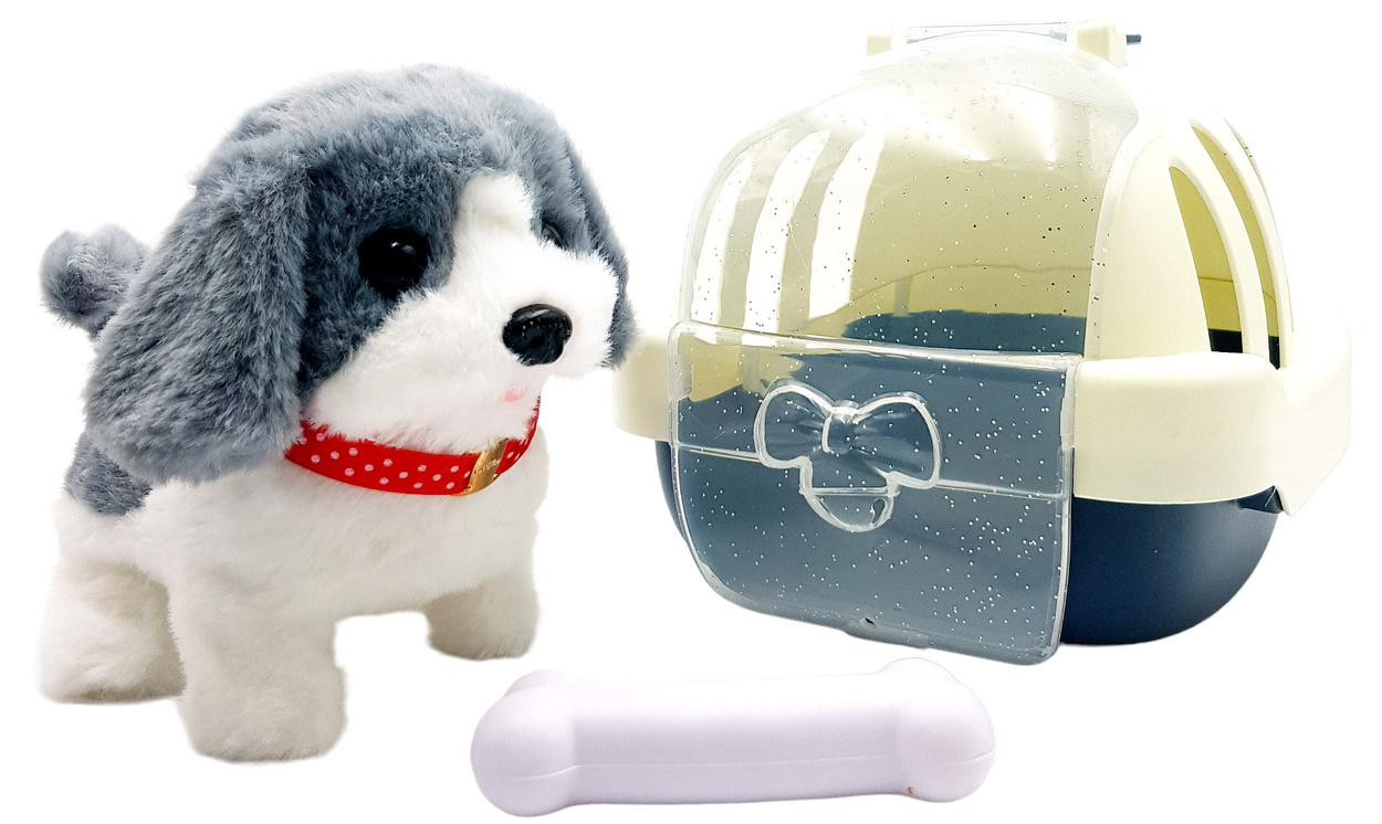 - Chodzący i szczekający PIESEK z domkiem i kością do karmienia.