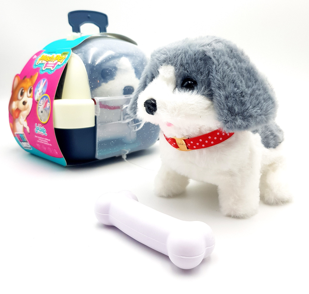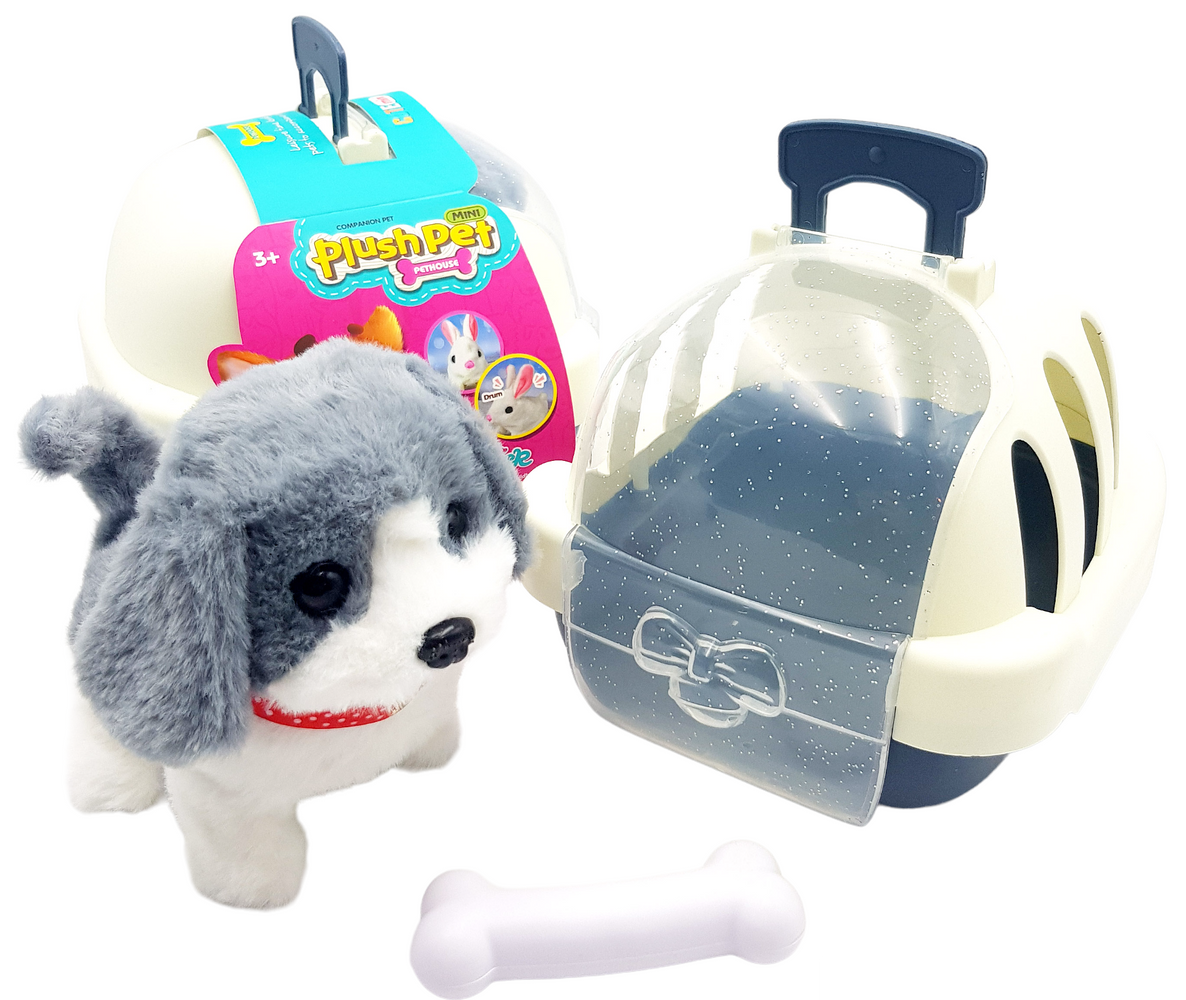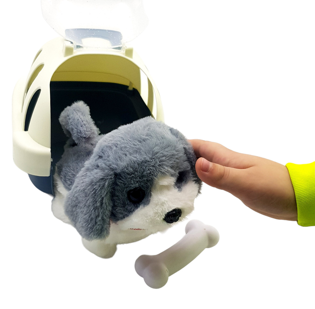 CHODZĄCY PIESEK Z DOMKIEM I KOŚCIĄ DO KARMIENIA SZCZEKAJĄCY INTERAKTYWNY