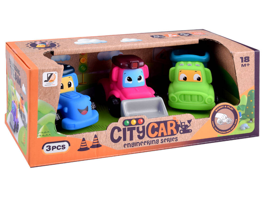 Zestaw 3 autek budowlanych pozwoli na wesołą, bezpieczną zabawę dla dzieci od 18 miesiąca życia. Pojazdy wykonane są z gumy oraz tworzywa sztucznego, nie posiadają ostrych krawędzi, czy małych elementów, więc bez obaw można je podarować nawet małemu brzdącowi.