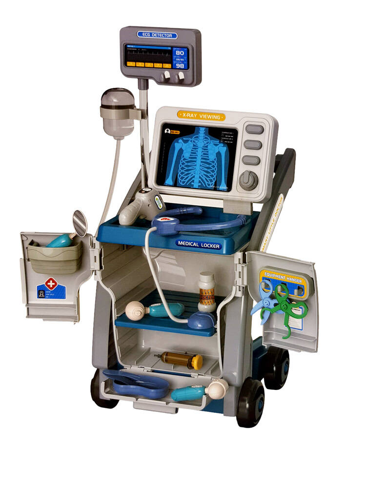 BARDZO DUŻY zestaw Małego Lekarza na Wózku z panelem RTG EKG - 16 elementów wyposażenia