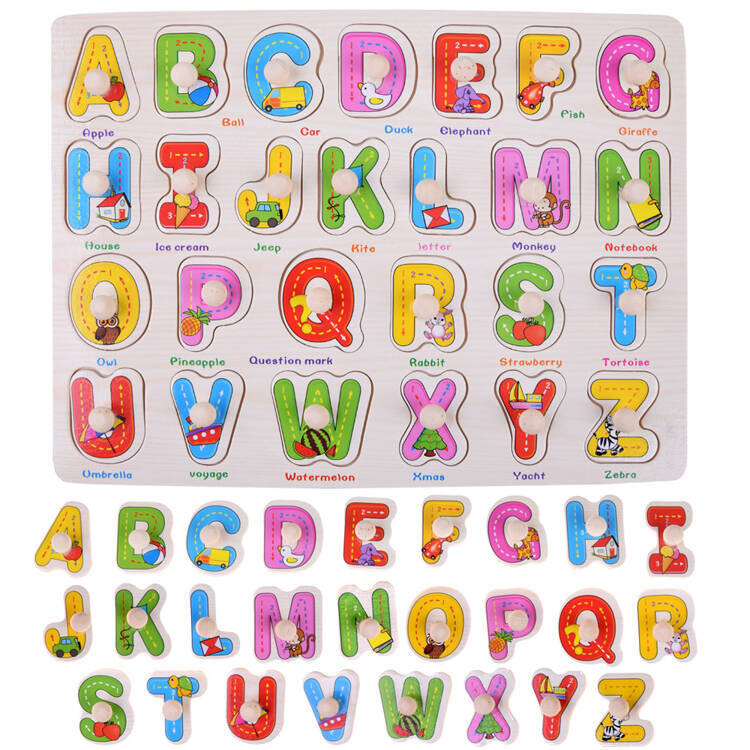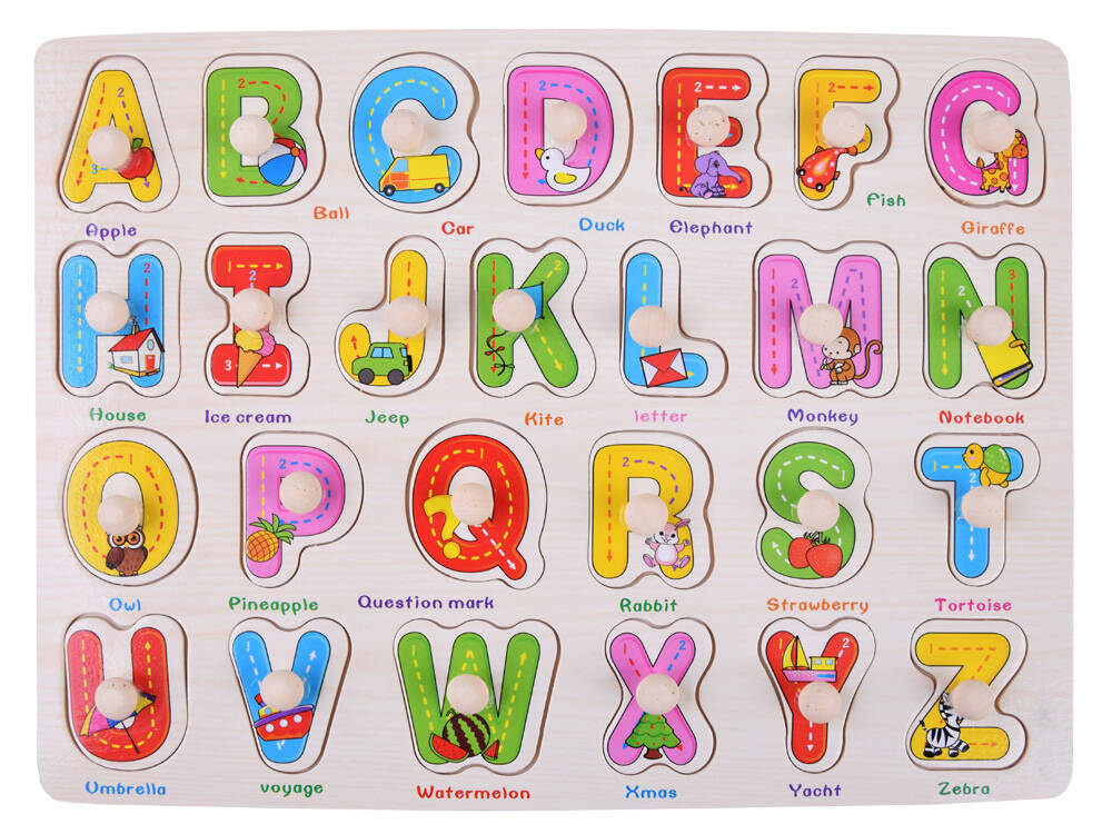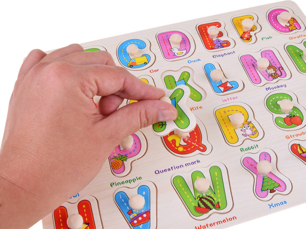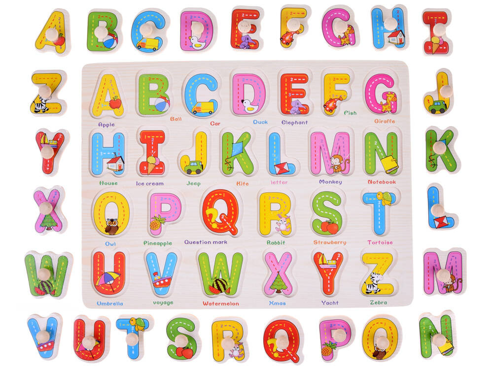 26 dużych, kolorowych liter z uchwytami pozwoli dziecku na samodzielne zapoznawanie się z literami, ćwiczenie poprzez zabawę najlepiej utrwala się w pamięci dziecka. Litery są poukładane na drewnianej tablicy, pomalowane w różnych kolorach przez co cała układanka jest bardzo atrakcyjna i przykuwająca uwagę dziecka.