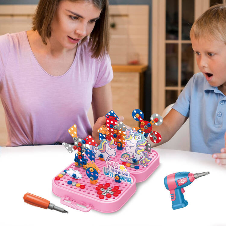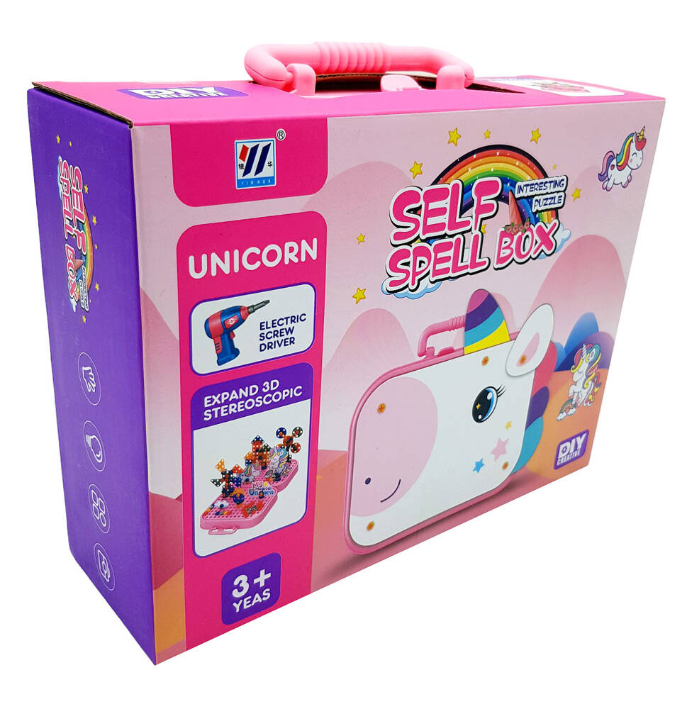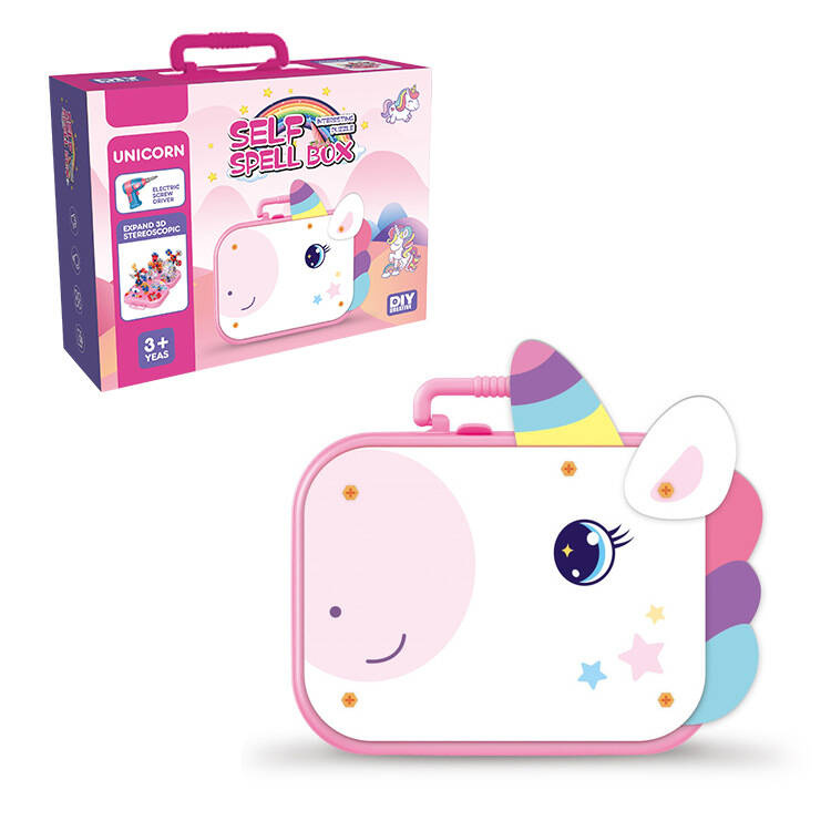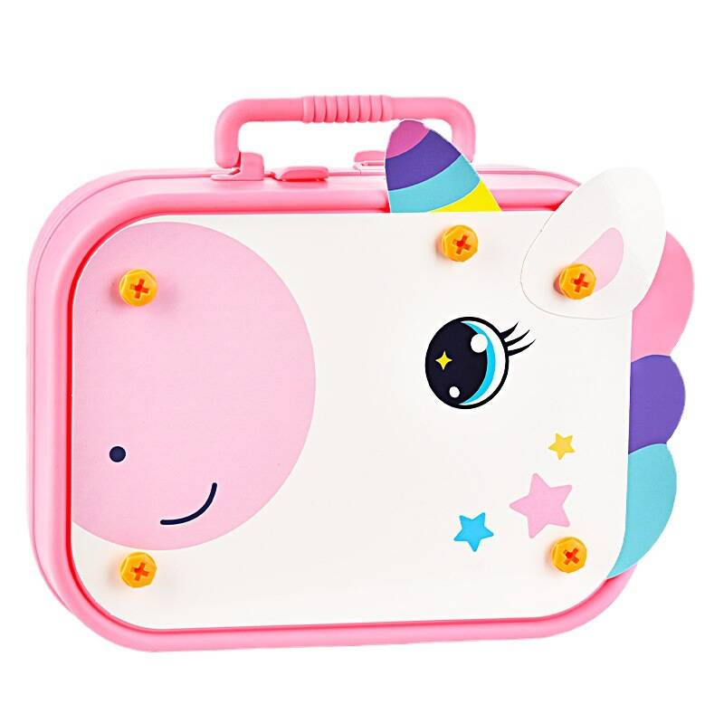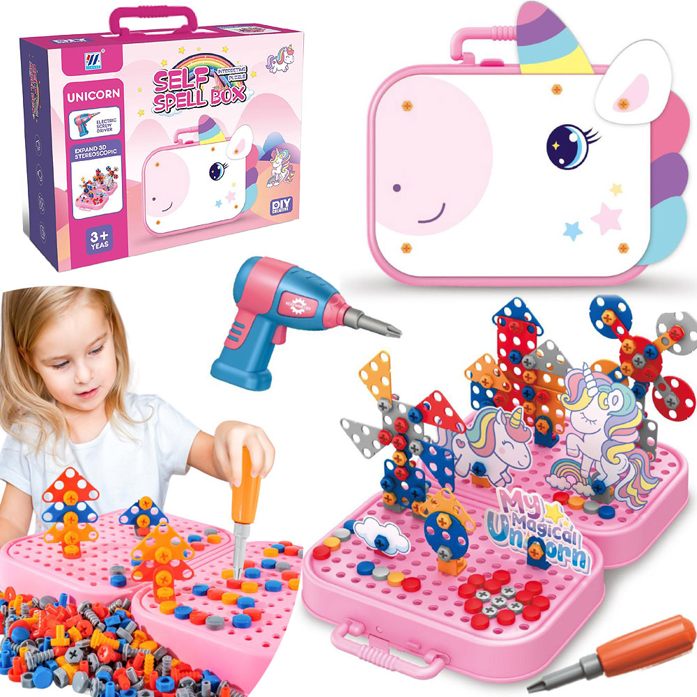 • ZESTAW KLOCKI KONSTRUKCYJNE w walizce Układanka Wkrętarka Klocki Majsterkowicz Puzzle. ZESTAW DO SKRĘCANIA JEDNOROŻEC