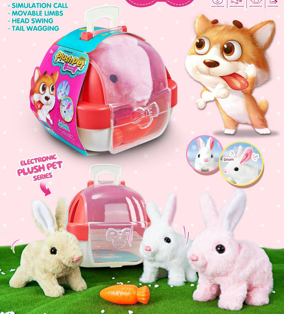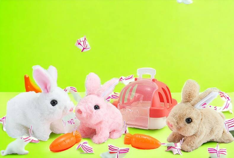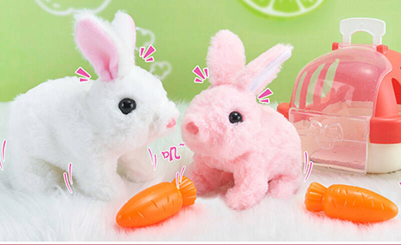 - Chodzący i wydający dźwięki Królik z otwieranym domkiem i marchewką do karmienia.