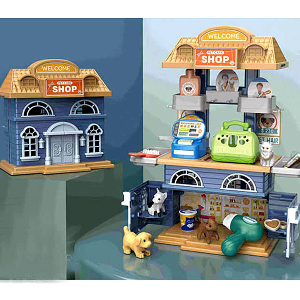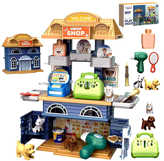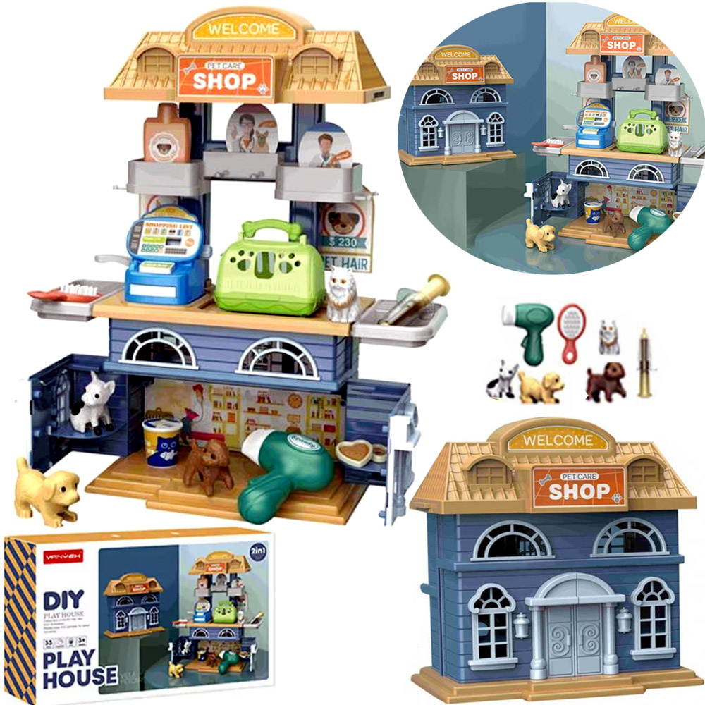 Przenośny lekarz weterynarz / sklep zoologiczny / weterynarz Pet CARE Shop 3w1 Domek,