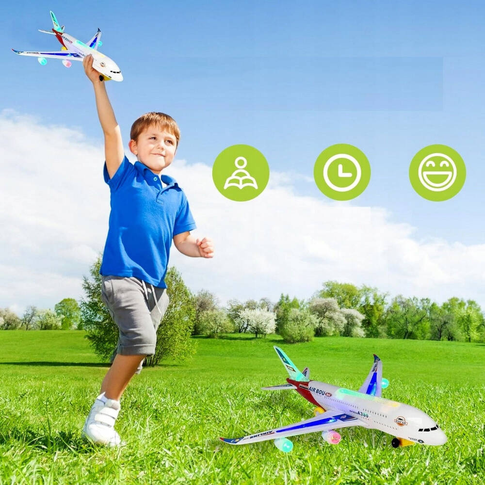 SAMOLOT PASAŻERSKI JEŹDZI GRA ŚWIECI DŹWIĘK zabawka DUŻY 45 A380 diody LED