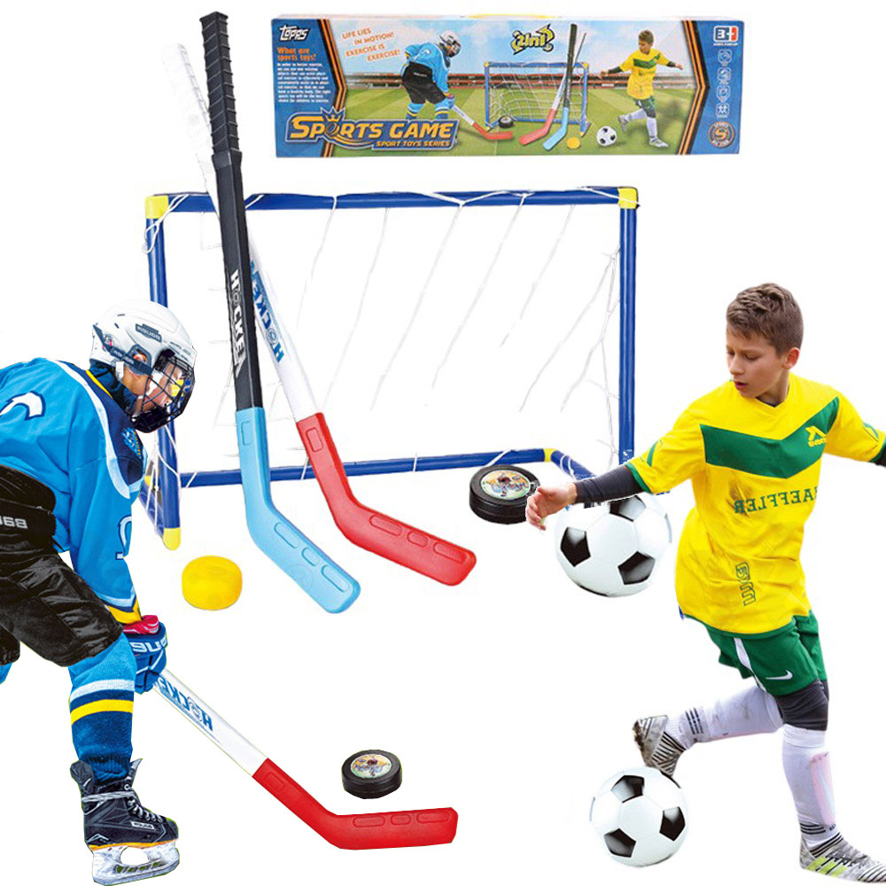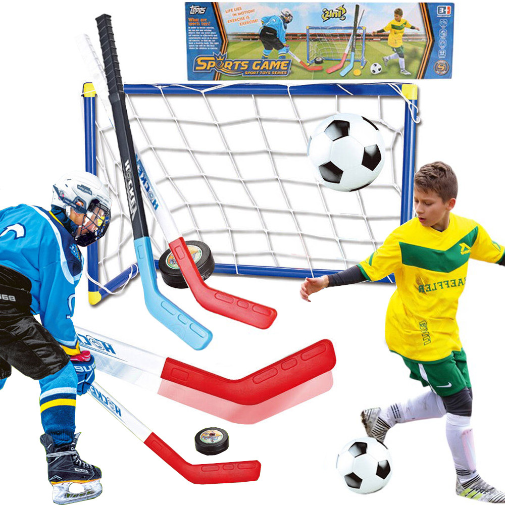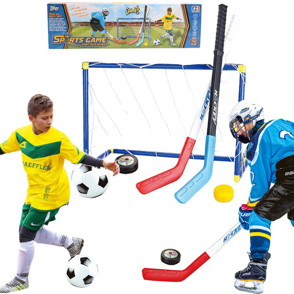 ZESTAW DO GRY w UNIHOKEJA i BRAMKA PIŁKARSKA DLA DZIECI 2w1 KIJE KRĄŻEK PIŁKA