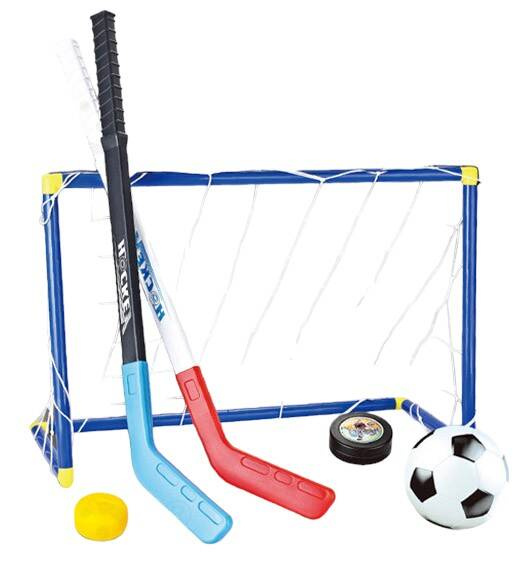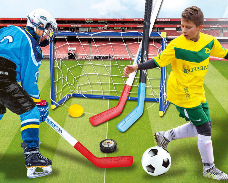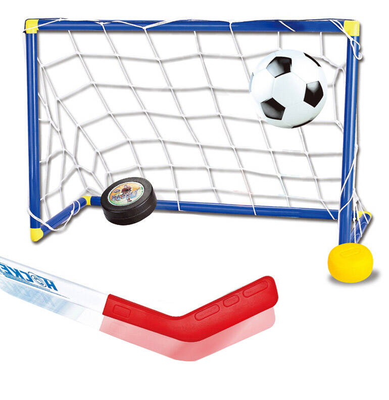 Odkryj zestaw 2w1 do Unihokeya i Piłki nożnej dla dzieci, zawierający bramkę, kije i krążek. Zapewnij swojemu dziecku aktywną zabawę na świeżym powietrzu!