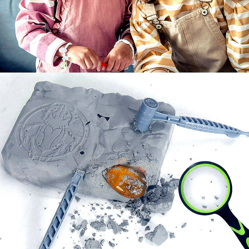 • Interaktywna Zabawa: Dziecko może badać i wykopywać skamieliny za pomocą narzędzi archeologicznych, co sprawia, że proces odkrywania staje się interaktywny i angażujący.