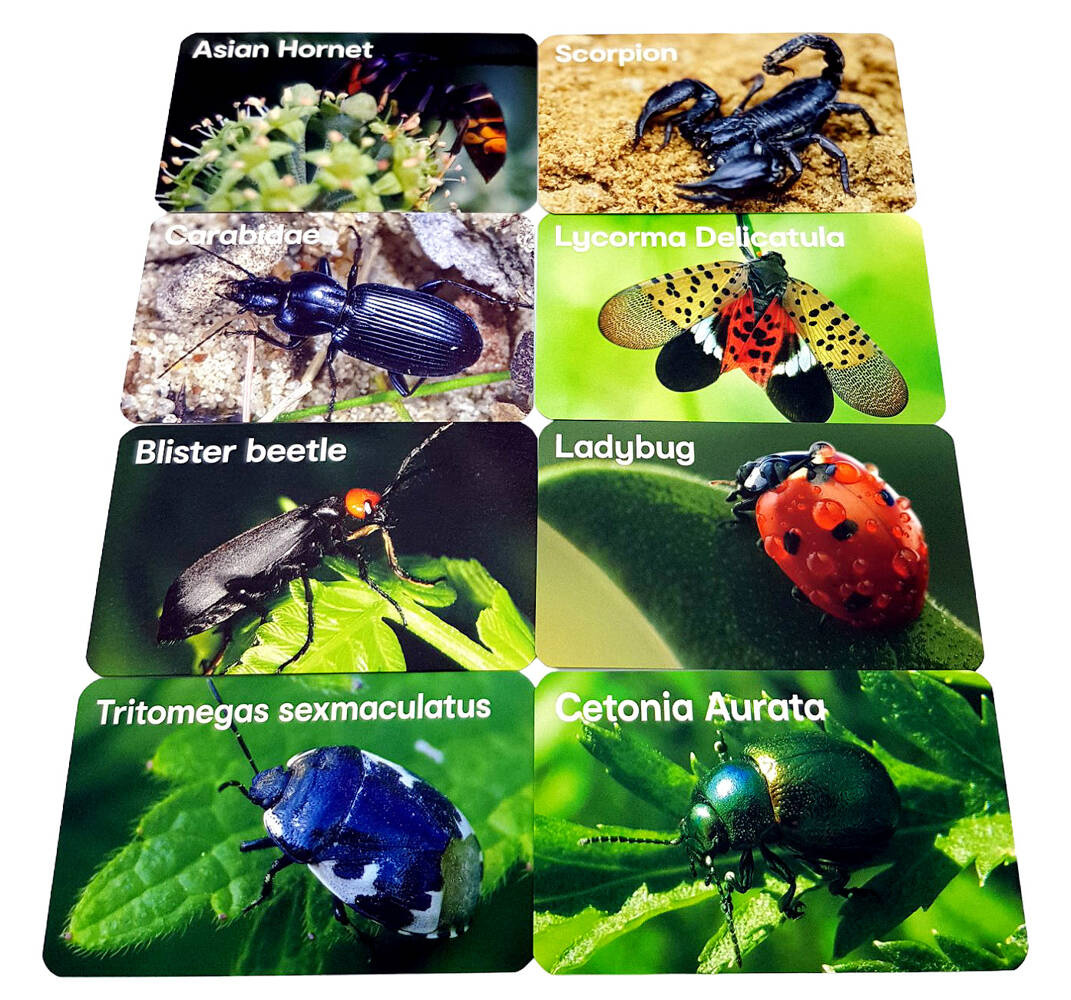 • 8 kart z wizerunkami i opisami owadów w języku angielskim.
