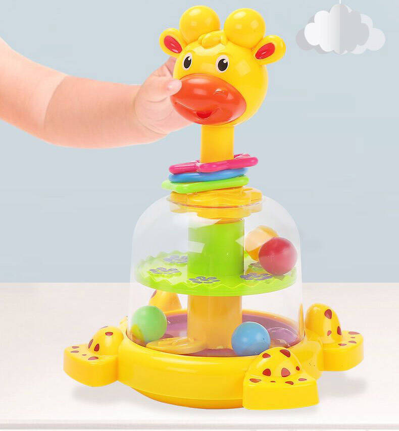 ZABAWKA SENSORYCZNA BĄK KARUZELKA Z PIŁECZKAMI ŻYRAFA SPINNER DLA NIEMOWLĄT