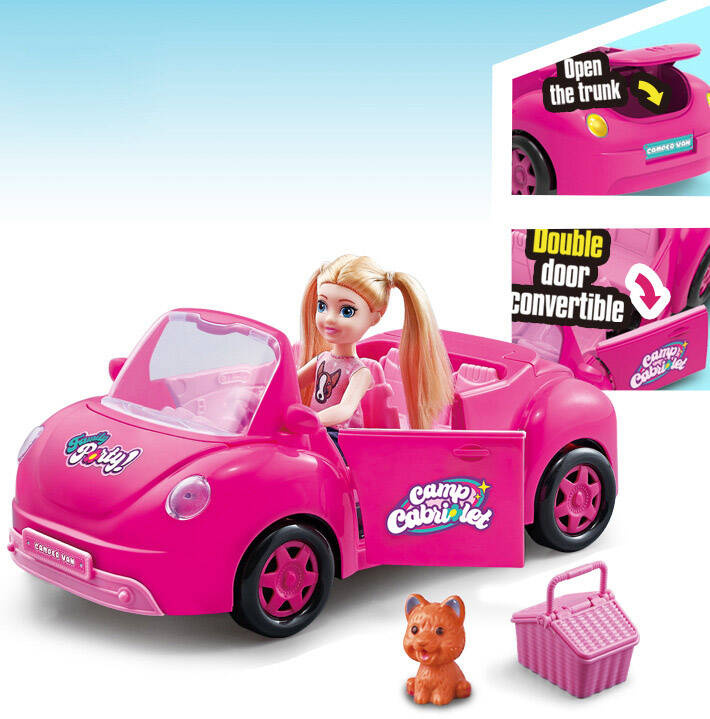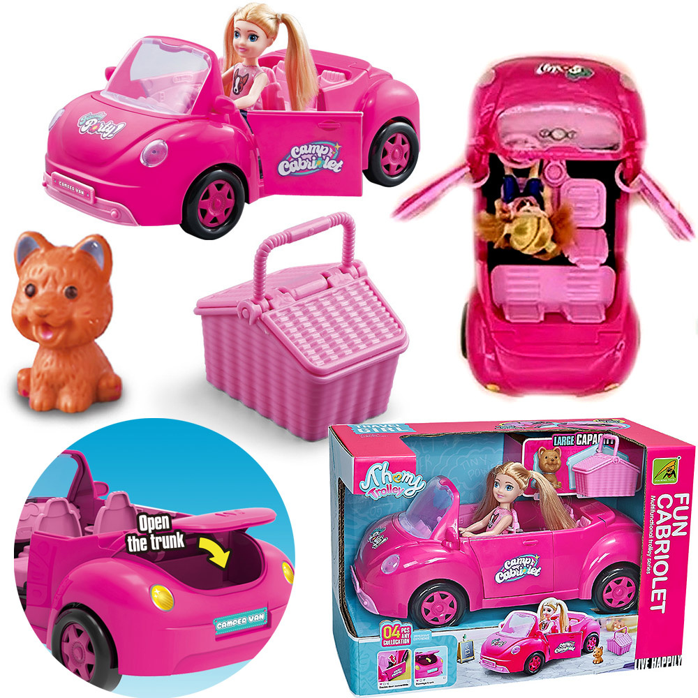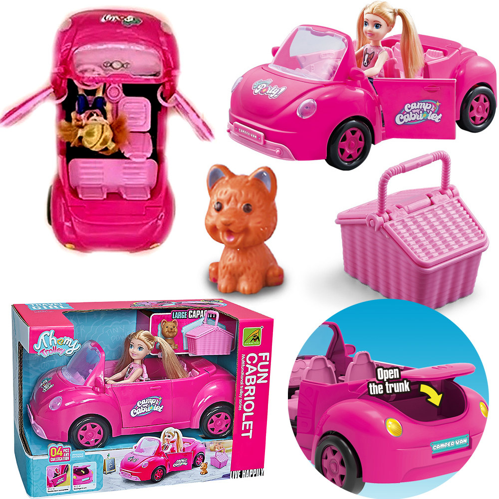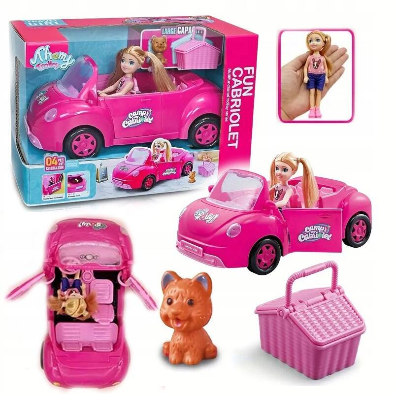 • DUŻY KABRIOLET DLA LALEK RÓŻOWY + LALKA PIESEK AUTO SAMOCHÓD ZESTAW