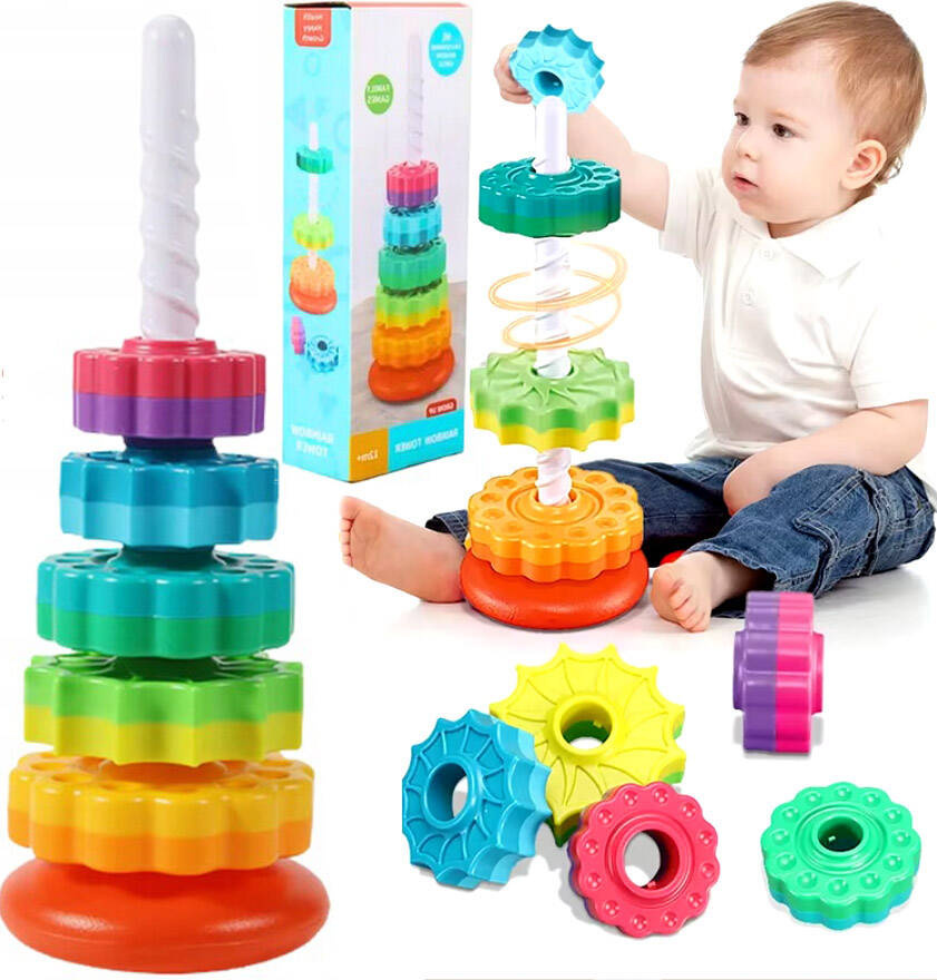 - WIEŻA TĘCZOWA SENSORYCZNA EDUKACYJNA PIRAMIDA SPIRALA SORTER DO UKŁADANIA. ZAKRĘCONA WIEŻA ZABAWKI DO UKŁADANIA EDUKACYJNE DLA DZIECI SENSORYCZNE 12msc+