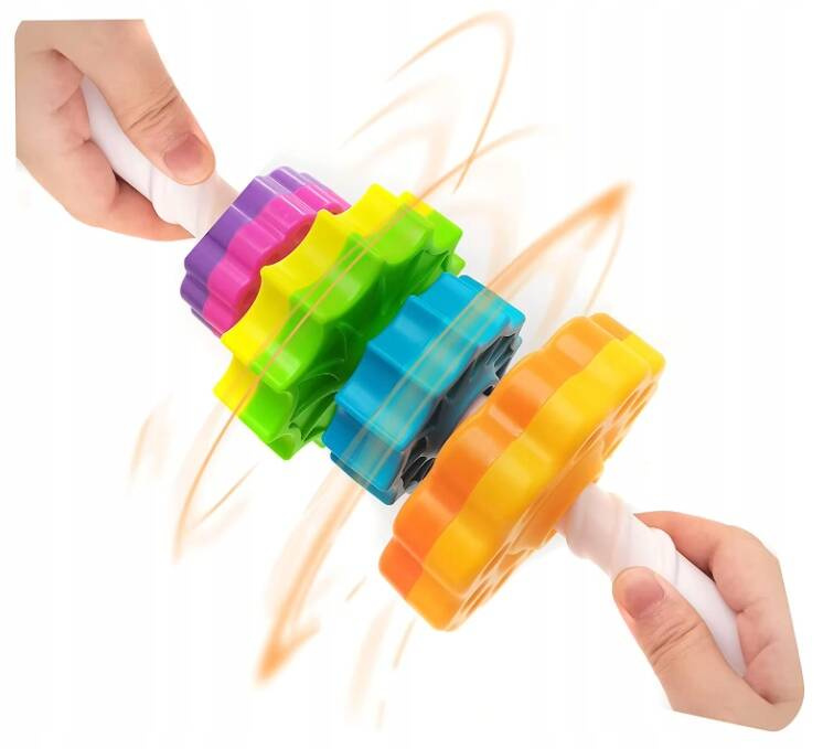 Kolorowe krążki: Każdy z sześciu krążków ma inny kolor i rozmiar, co pomaga dzieciom uczyć się rozpoznawania barw oraz porównywania wielkości. Dodatkowo, różnorodne faktury krążków stymulują zmysł dotyku.