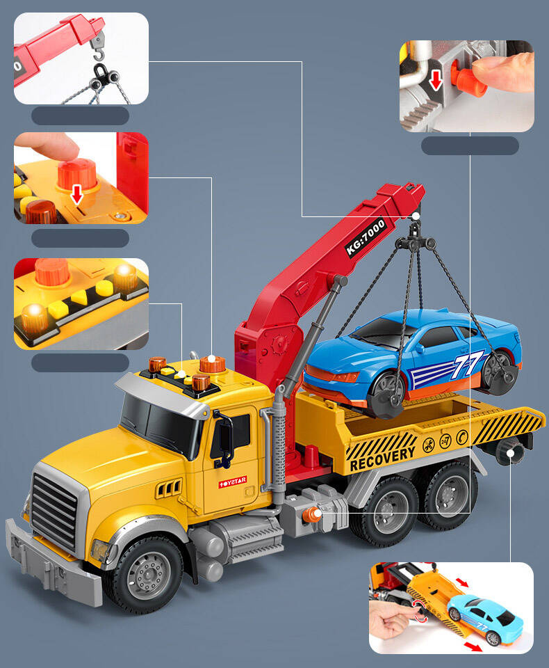 AUTO POMOC DROGOWA ZABAWKA SAMOCHÓD LAWETA DLA DZIECI HOLOWNIK Z DŹWIGIEM