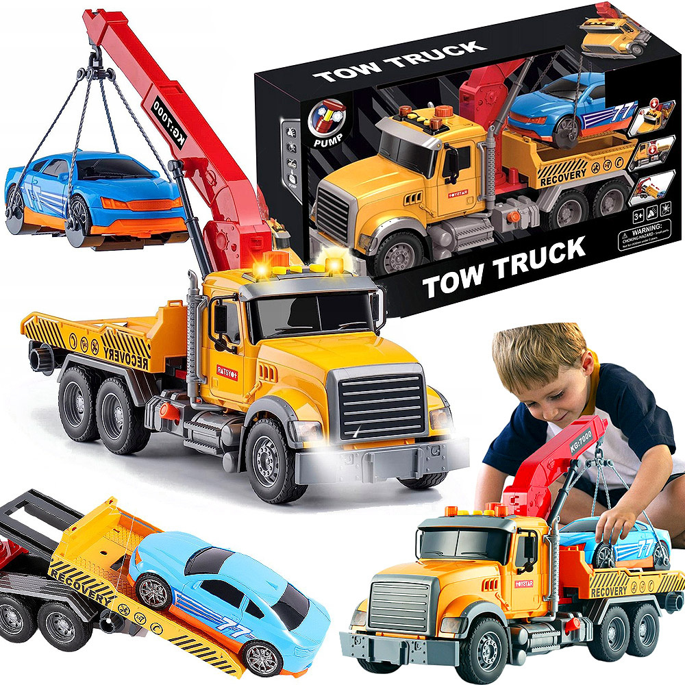- Auto pomoc drogowa zabawka Samochód laweta dla dzieci holownik. Ciężarówka Dźwig
