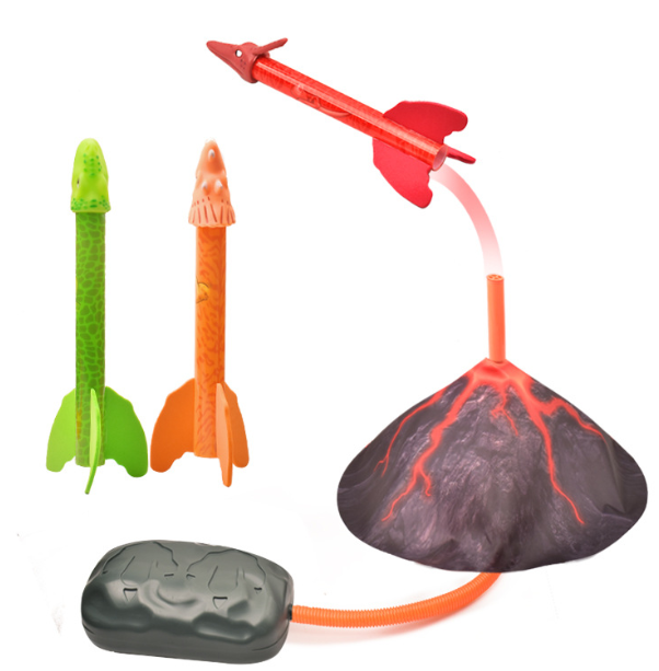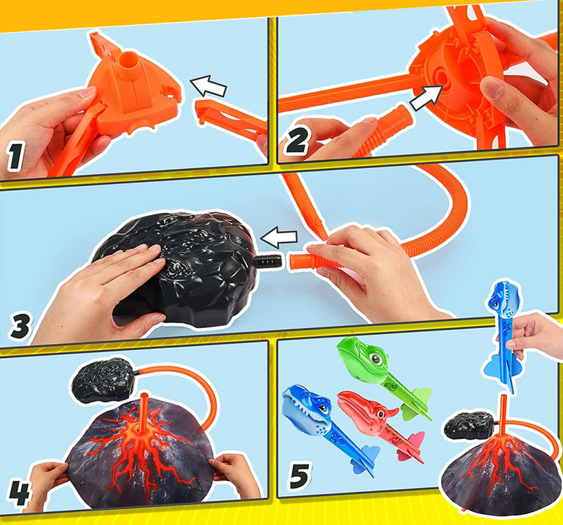 Dziecko umieszcza rakietę na wyrzutni znajdującej się na szczycie wulkanu, ustawia kąt i siłę wyrzutu, a następnie naciska, aby rakieta wzbiła się w powietrze. Dzięki regulacji wysokości, maluch może eksperymentować i dostosowywać lot rakiety.