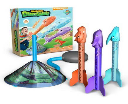 Zabawka wspiera rozwój zdolności manualnych, koordynacji oraz podstawowych zasad fizyki. Dzieci uczą się, jak działa ciśnienie i jak regulacja siły wyrzutu wpływa na wysokość lotu. Dodatek dinozaurów rozwija wyobraźnię i pobudza zainteresowanie przeszłością oraz przyrodą, tworząc świetne połączenie nauki i przygody.