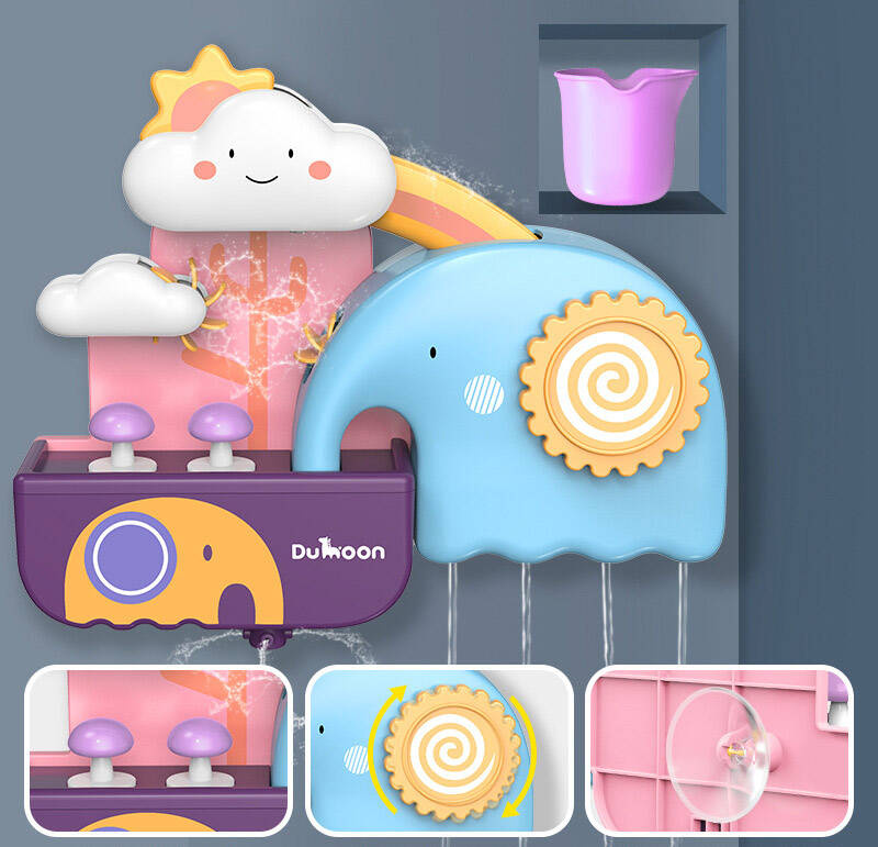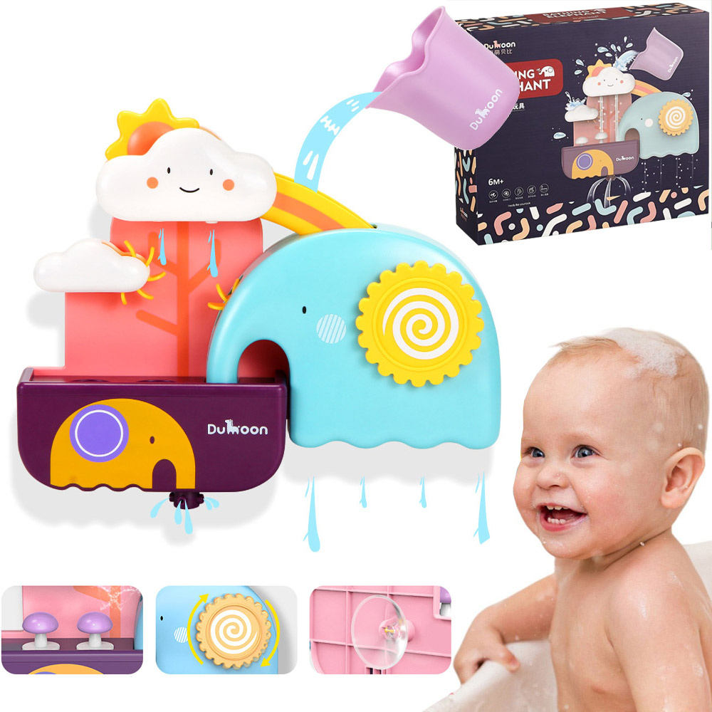 Odkryj Fontannę do wody kąpieli – interaktywna zabawka z kranikiem słonikiem i młynkiem wodnym. Idealna do rozwijania koordynacji ręka-oko i zabawy edukacyjnej w kąpieli.