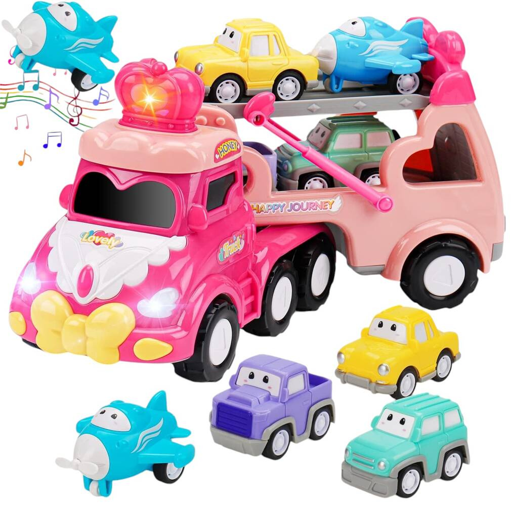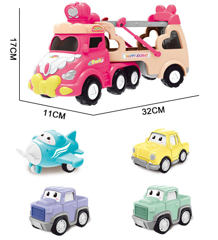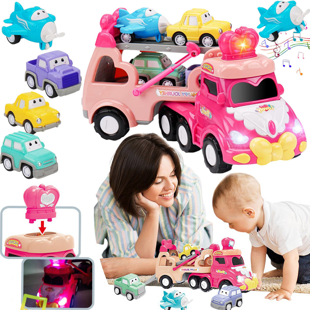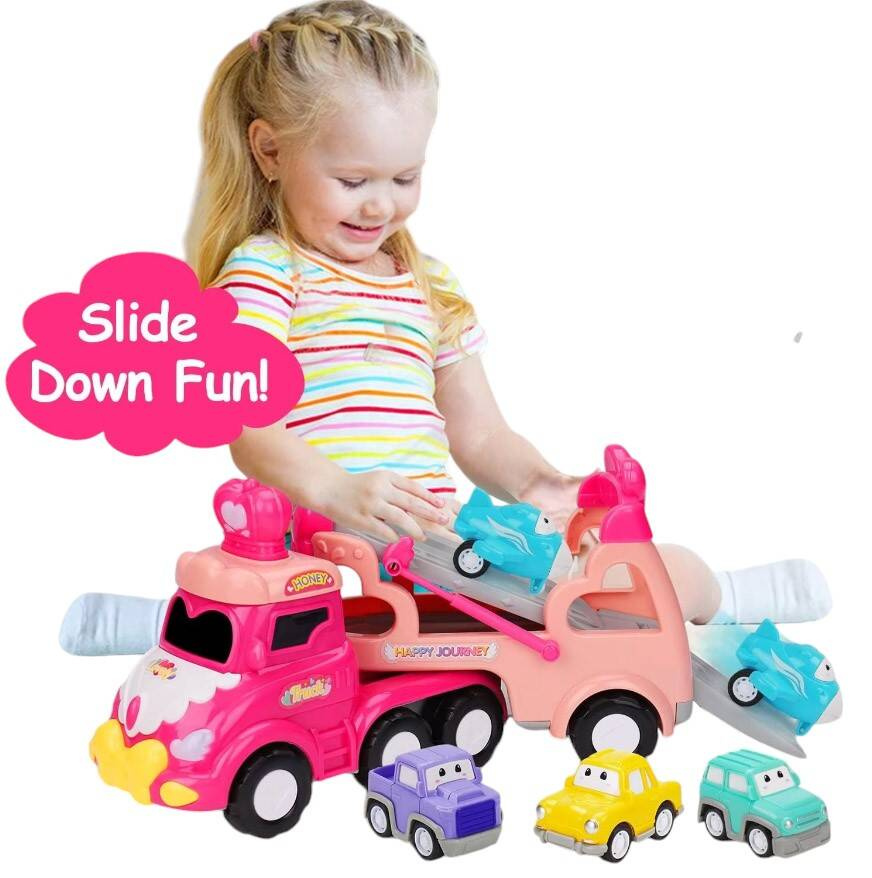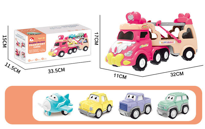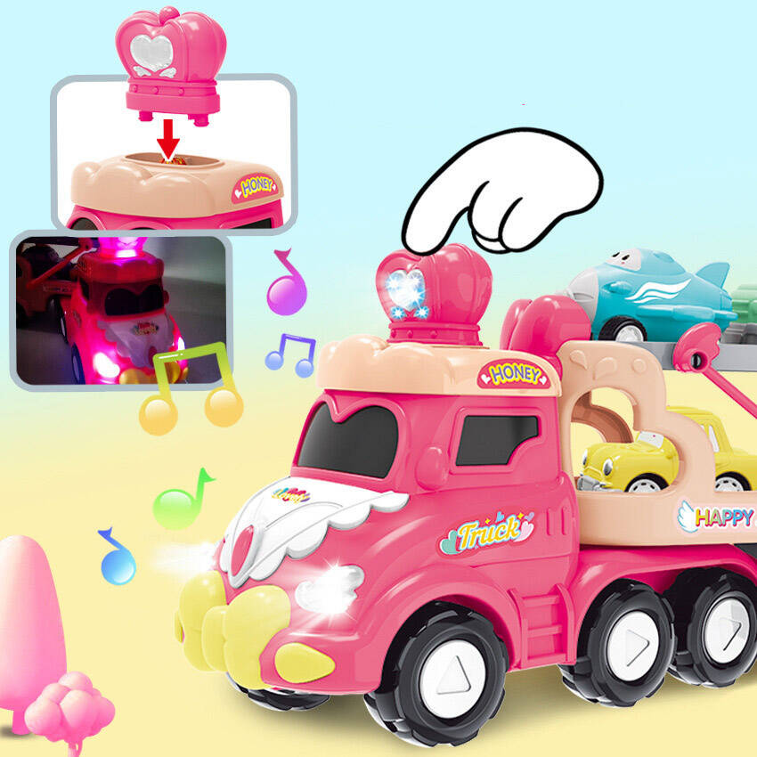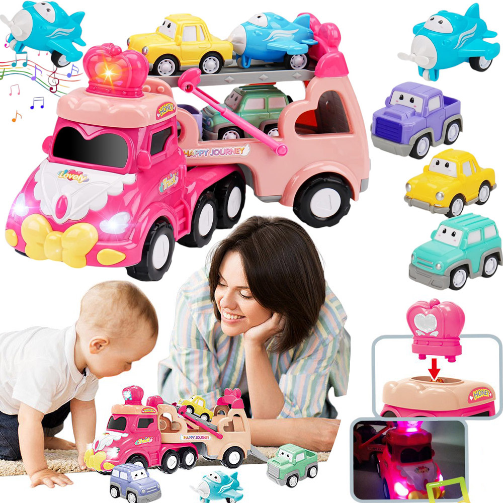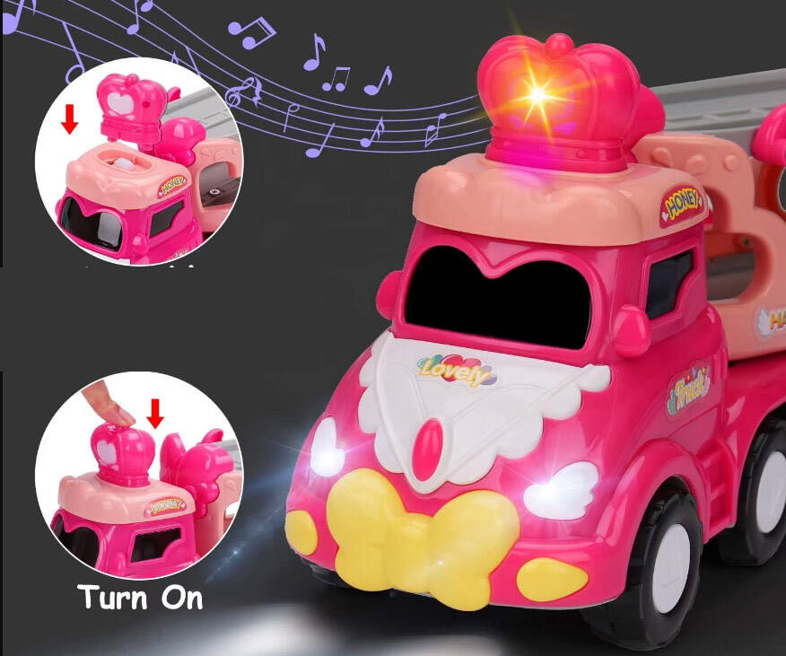 Różowa ciężarówka zabawka z autkami i światłami dla dziewczynki dzieci