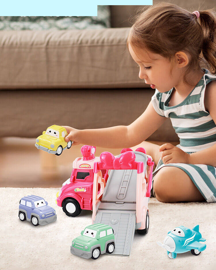 3. 5w1 – wielofunkcyjność zestawu: Oprócz głównej ciężarówki, zestaw zawiera małe samochodziki i samolot, które można przewozić, parkować i integrować w różne scenariusze zabaw.