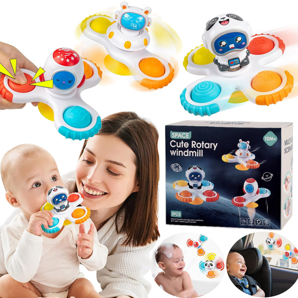- ASTRONAUTA WIRUJĄCE SPINNERY GRZECHOTKI GRYZAKI Z PRZYSSAWKAMI ZESTAW 3 szt