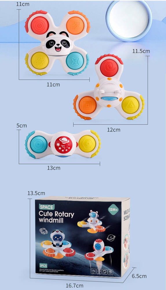 - Wirujące kosmiczne wiatraczki z przyssawkami, obrotowa grzechotka