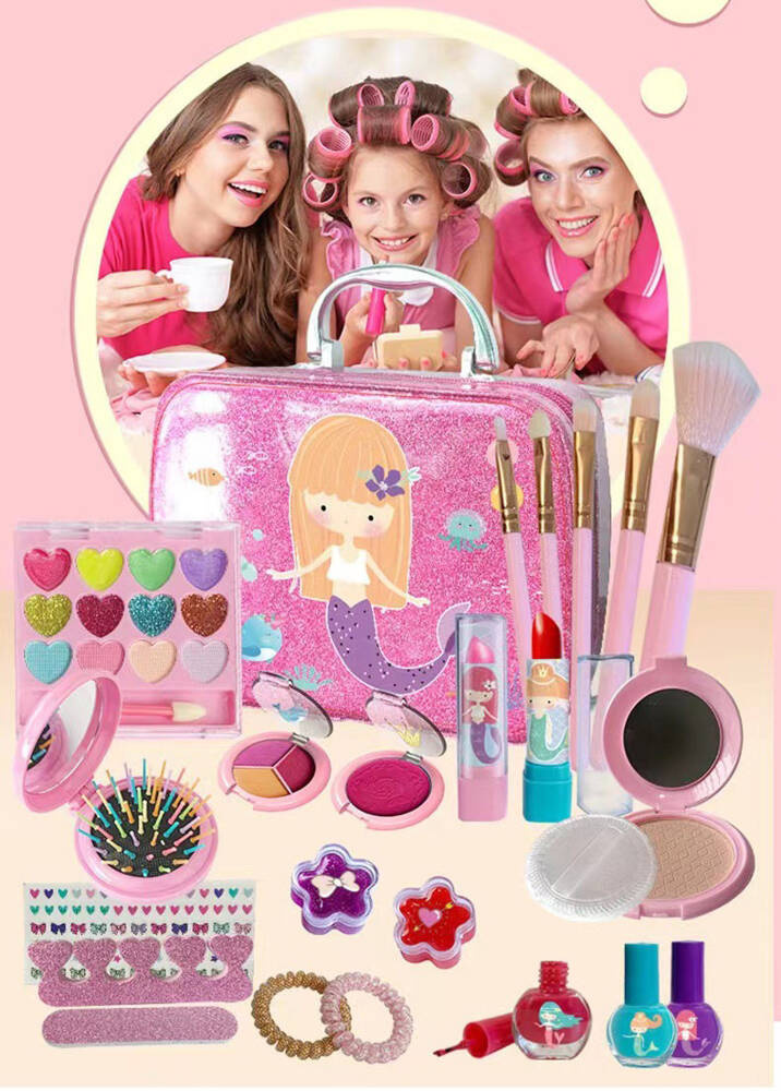 KUFEREK KOSMETYKÓW BROKATOWA SYRENKA DO malowania MAKIJAŻU I PAZNOKCI ZESTAW dla dzieci