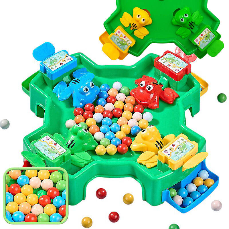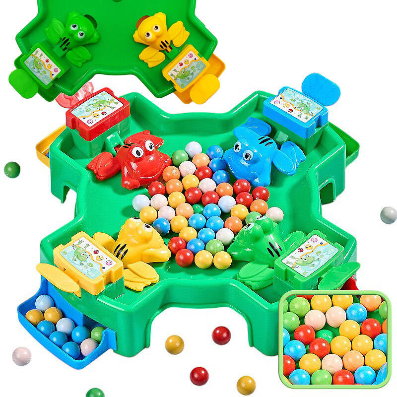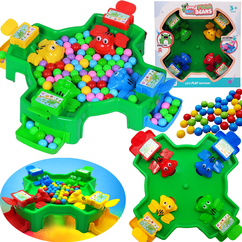 - Głodne Żabki gra planszowa Wesołe Skaczące żaby kulki rodzinna dla 4 dzieci. Gra z piłeczkami 4 żabki