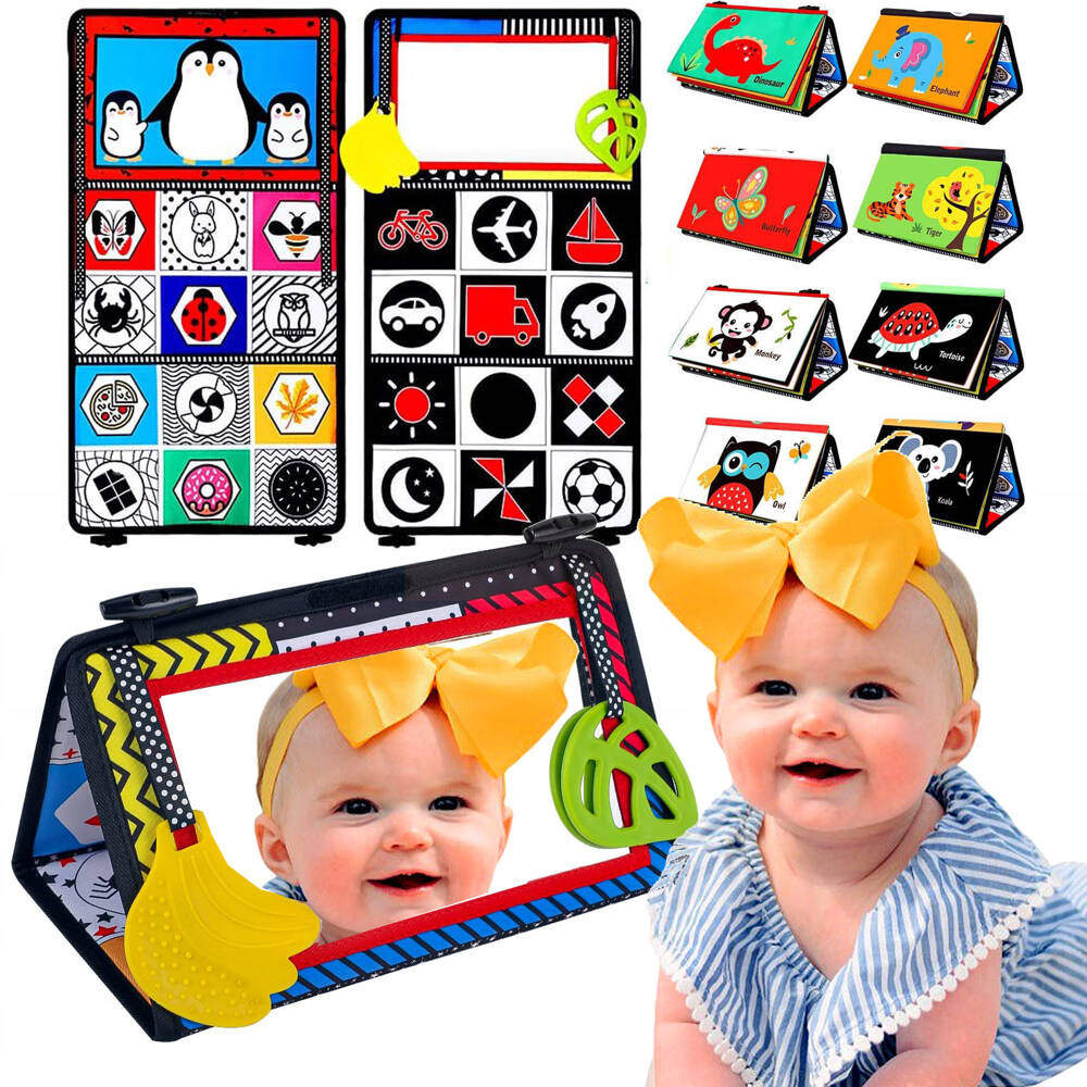 Książeczka Kontrastowa Zabawka Sensoryczna z Lusterkiem dla Niemowląt Wzory