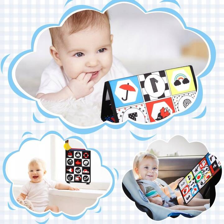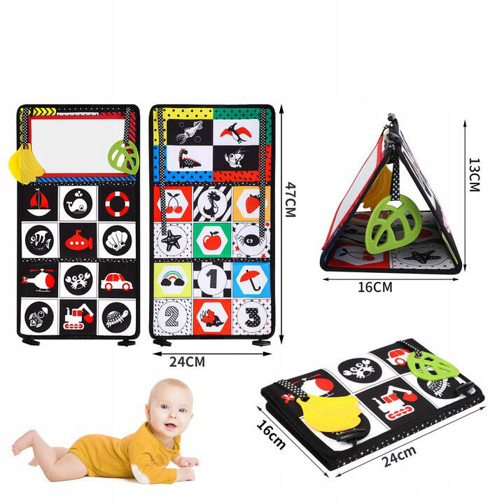 - Książeczka Kontrastowa Zabawka Sensoryczna z Lusterkiem dla Niemowląt Wzory. Rozkładana mata z obrazkami