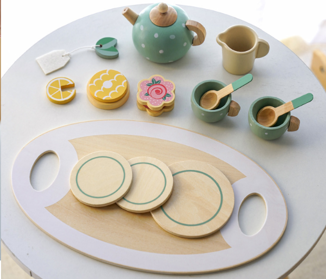 Drewniany zestaw serwis herbaciany dla dzieci zastawa do zabawy herbatki prezent