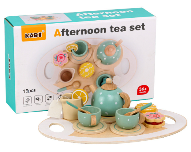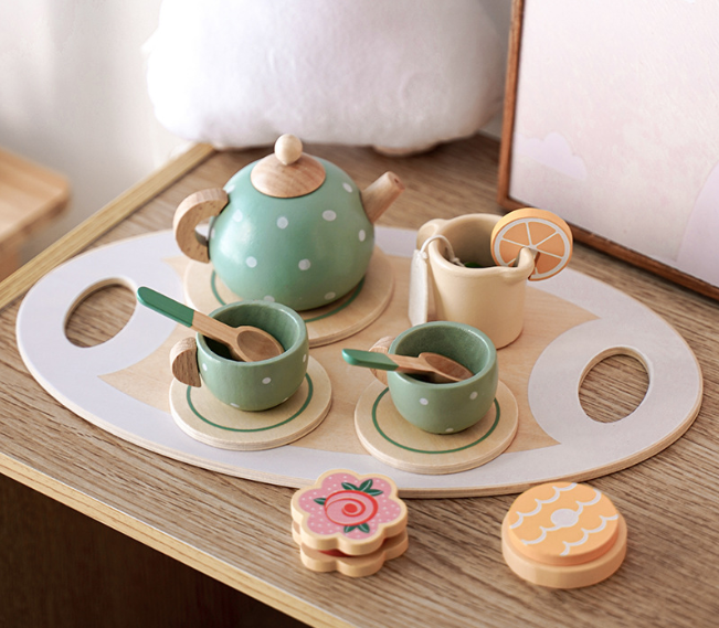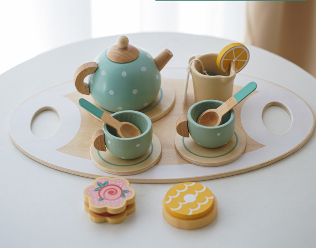• Zestaw do herbatki zabawy w herbatkę drewniany zabawka dla dzieci. Drewniany serwis do herbaty