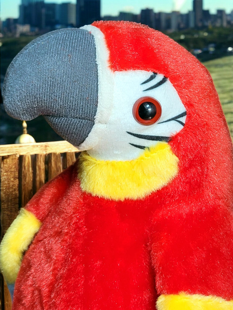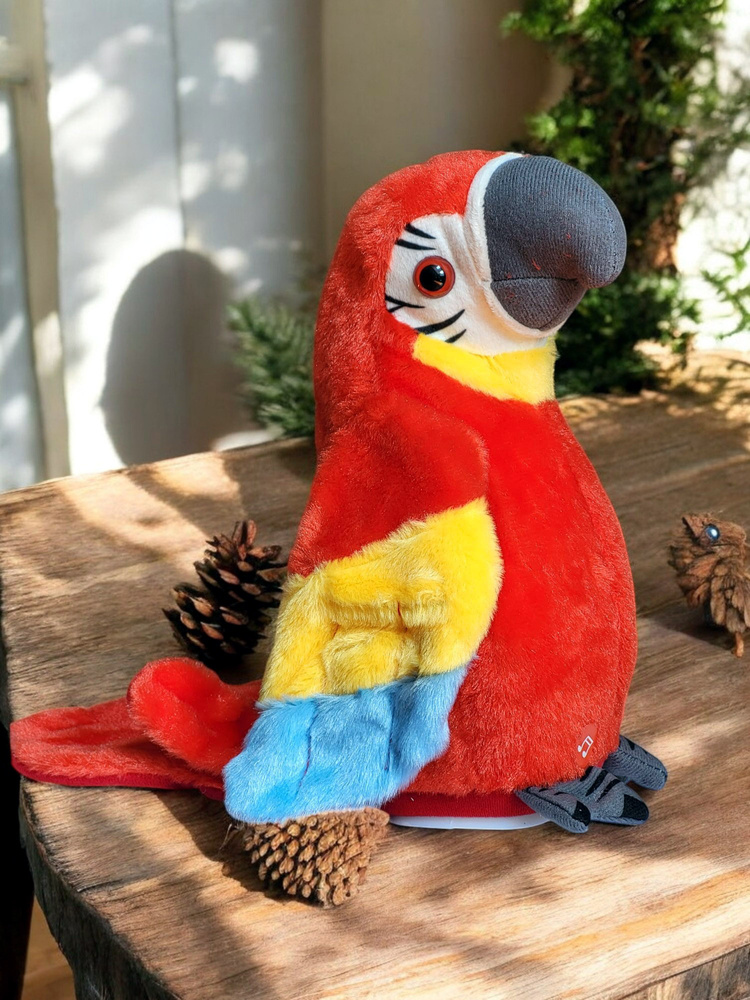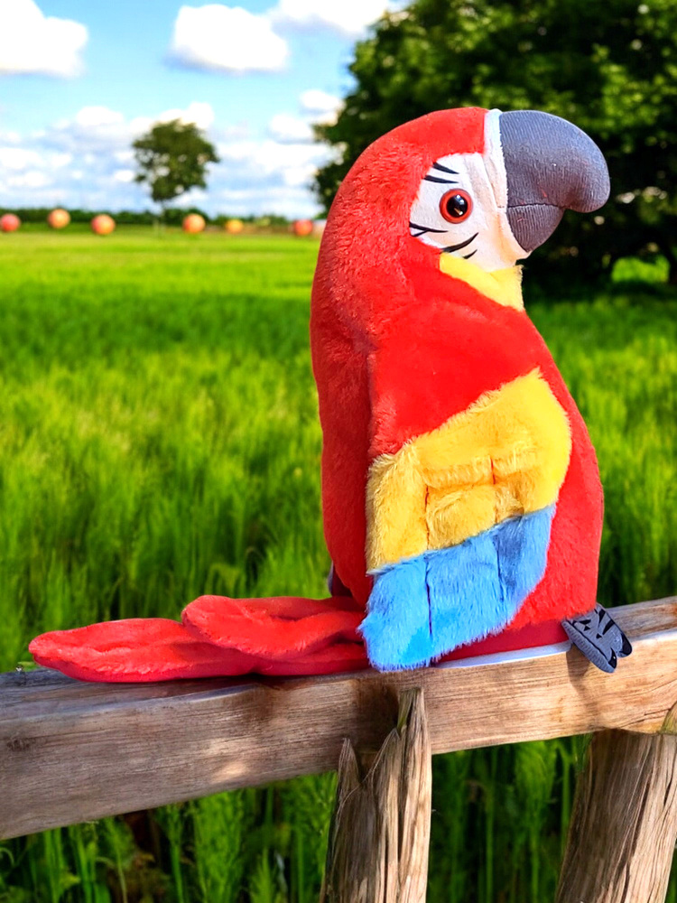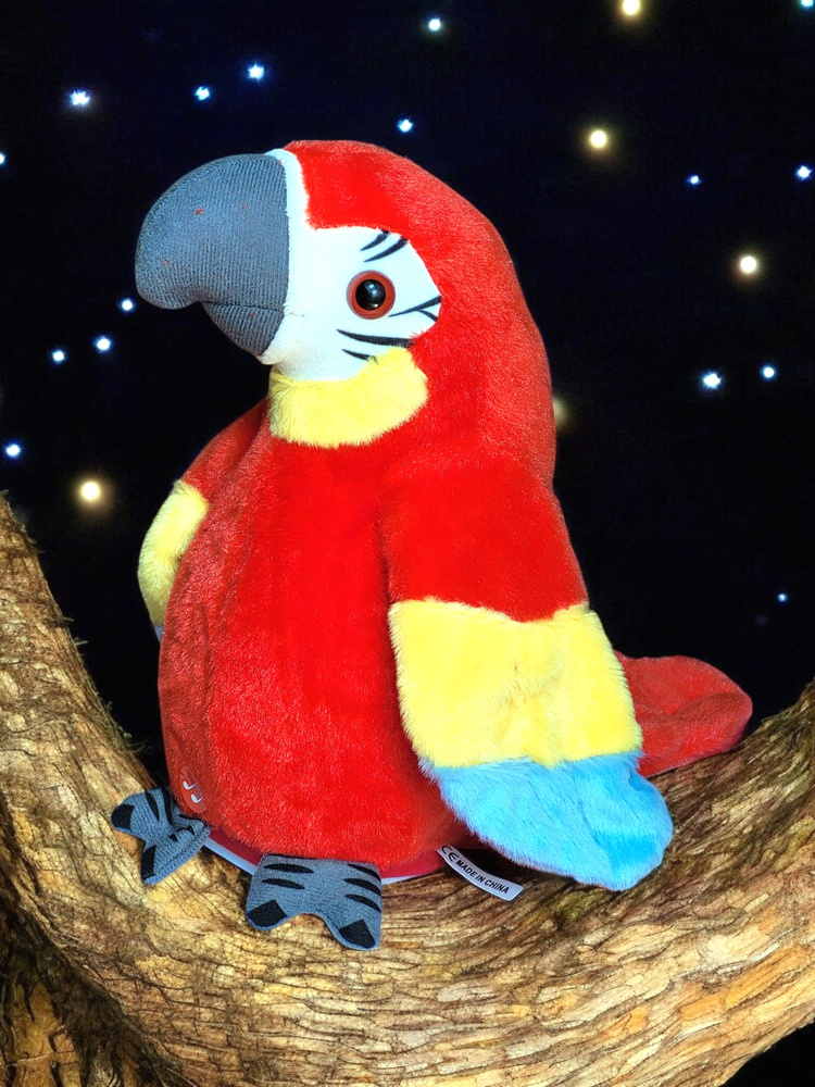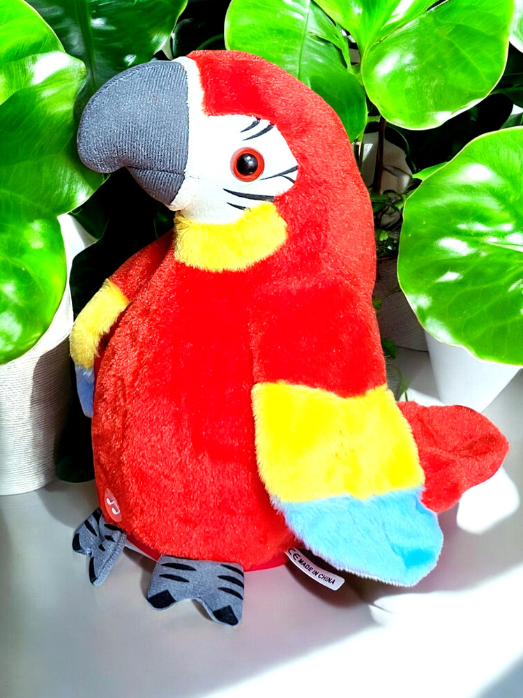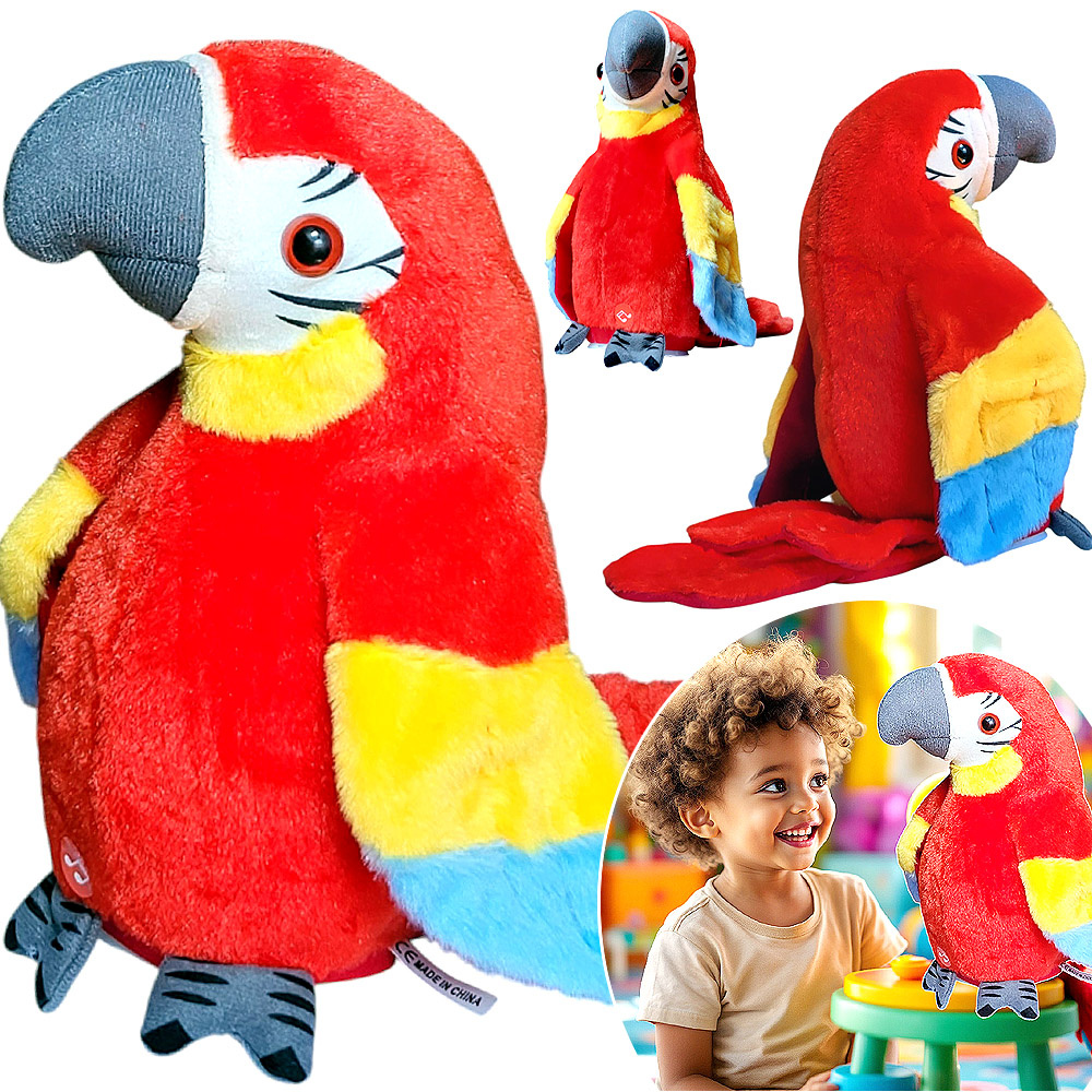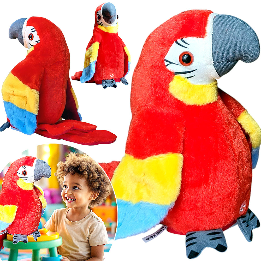 • Interaktywna gadająca papuga! Pluszowa maskotka powtarza słowa, rusza się i śpiewa.