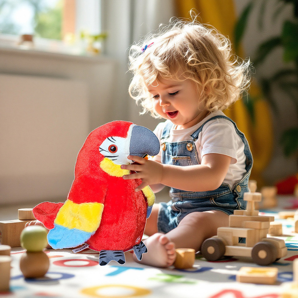 • Zabawna Gadająca Papuga Pluszowa – Interaktywna Pluszowa Zabawka Powtarzająca Słowa | Maskotka dla Dzieci