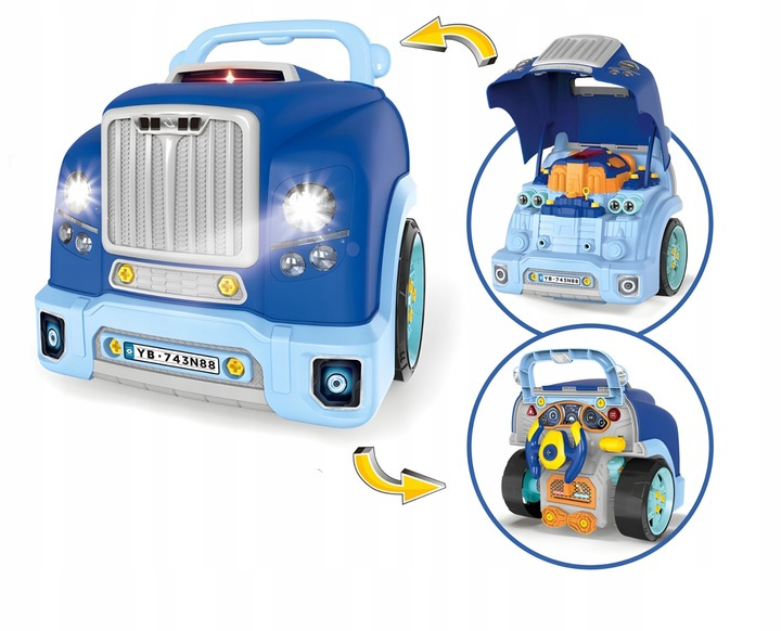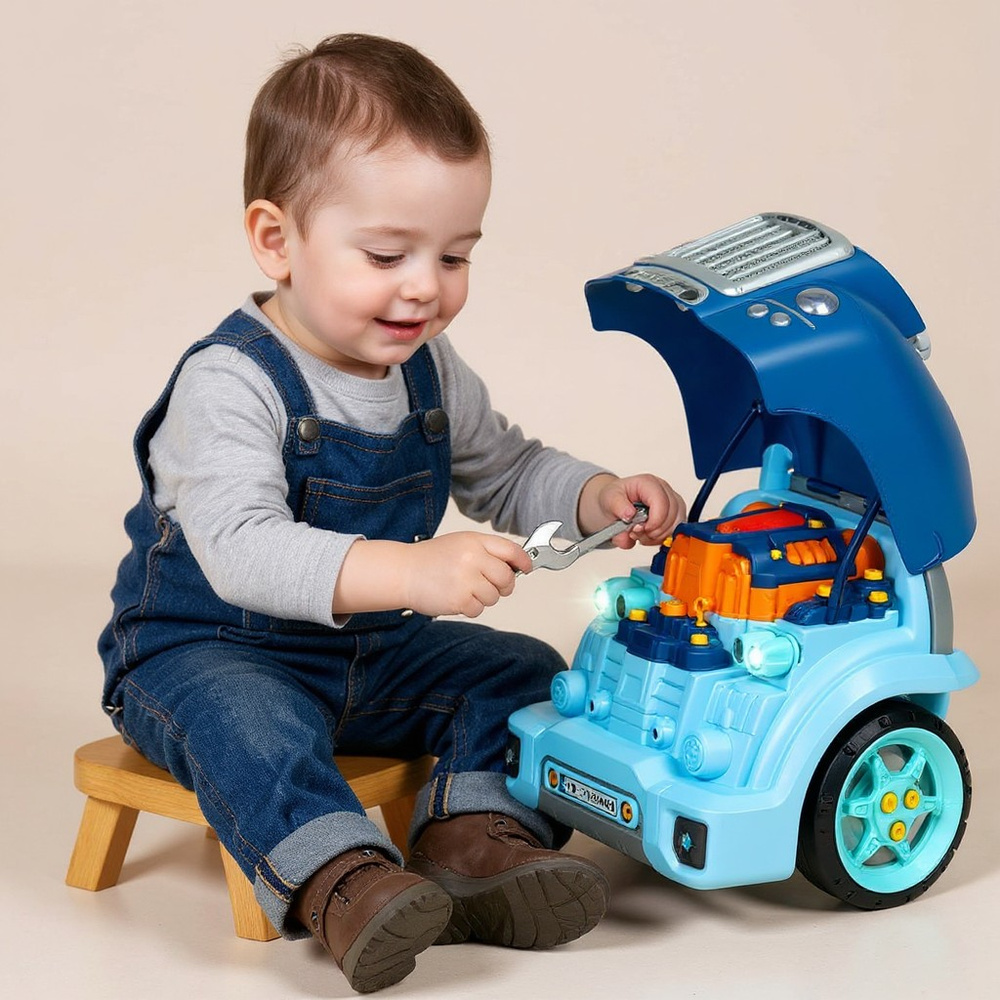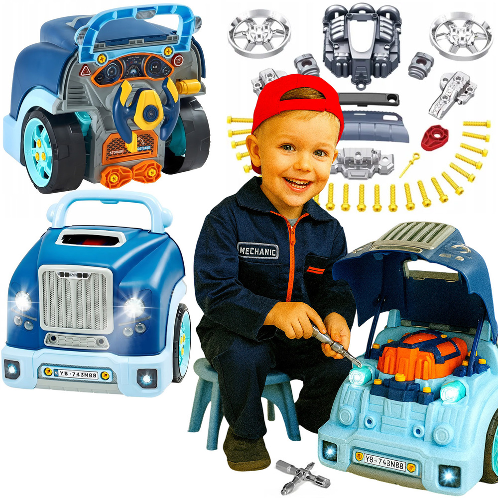 W komplecie znajdują się: śrubki, śrubokręty, klucze, elementy silnika – wszystko, co potrzebne, aby dziecko mogło samodzielnie złożyć mechanizm jak mały majsterkowicz.Kreatywna zabawa edukacyjna
