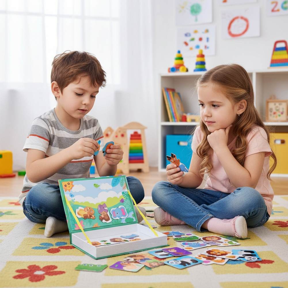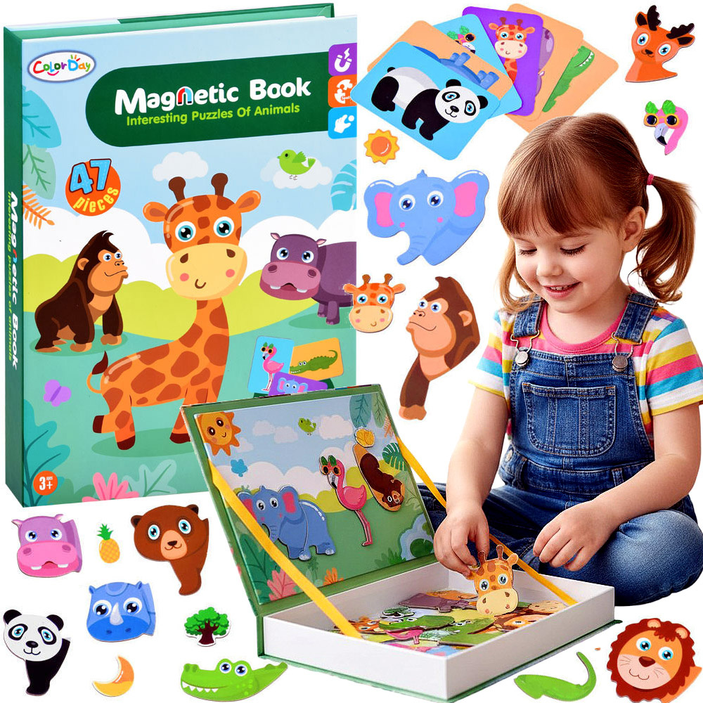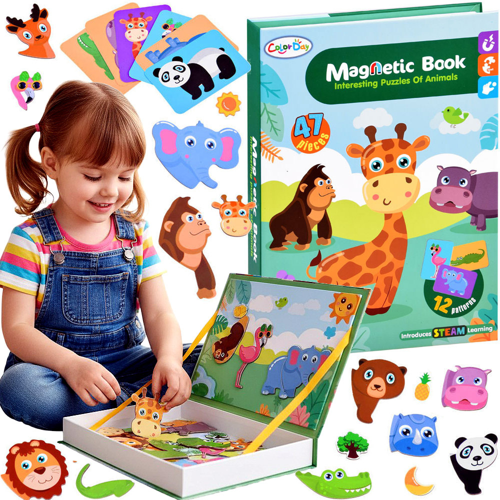 - zabawka edukacyjna, układanka magnetyczna, książka układanka, zabawka dla dzieci 3+, zwierzęta zoo, puzzle magnetyczne, prezent dla dziecka, zabawka kreatywna