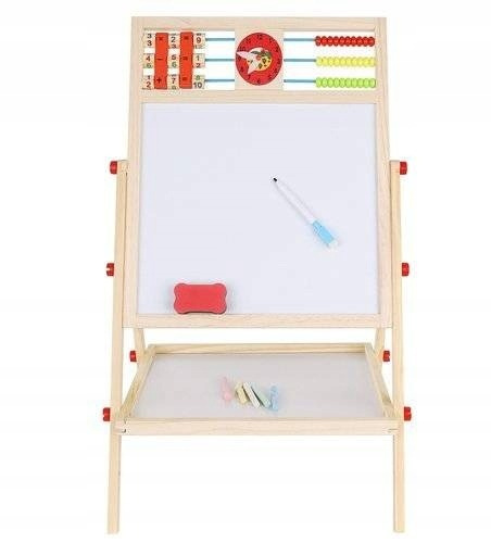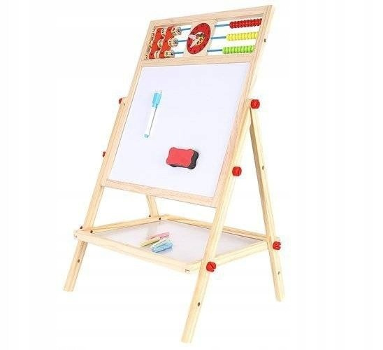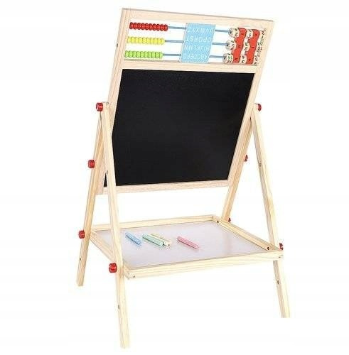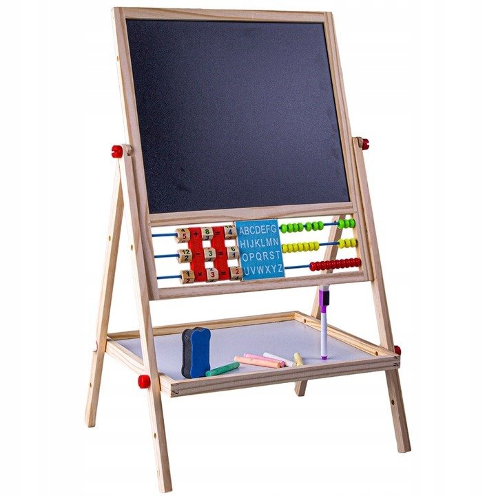 - Dwustronna tablica magnetyczna i kredowa dla dzieci z kompletem akcesoriów (magnesy, kredki, gąbka). Idealna do nauki liter, cyfr i rysunku przez zabawę. Bezpieczna, trwała i kreatywna edukacja w domu i szkole.
