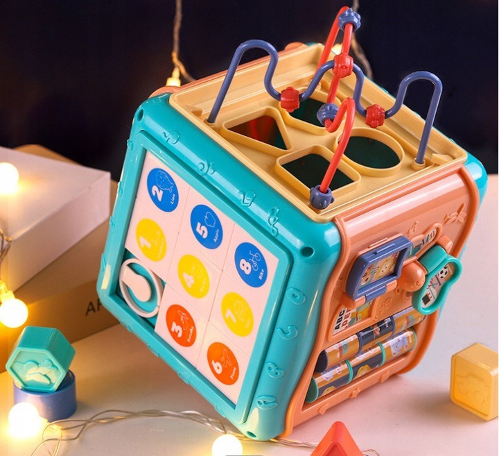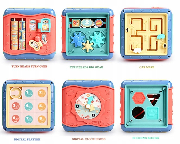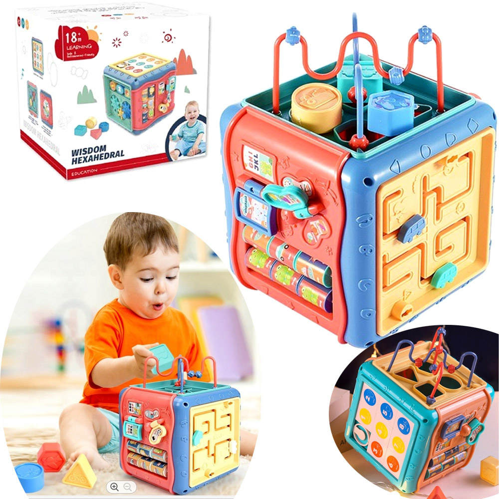MULTI KOSTKA ZABAWKA SENSORYCZNA SORTER KLOCKI ZEGAR PREZENT DLA DZIECKA