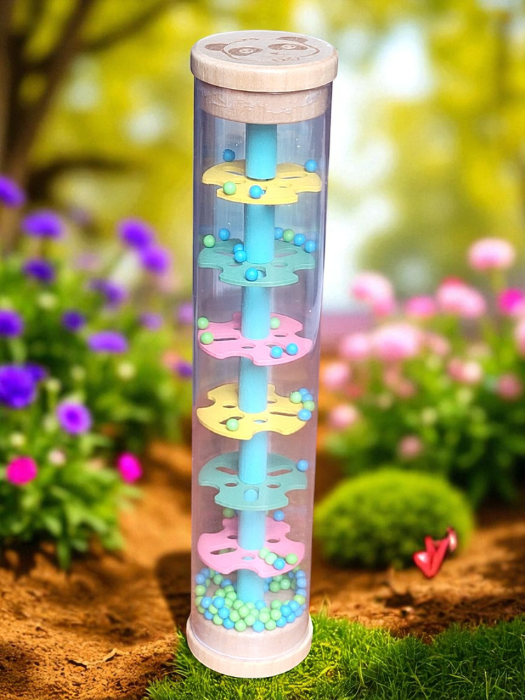 • Grzechotka deszczownica tuba z kuleczkami Marakas – drewniano-plastikowy instrument sensoryczny, efekt deszczu, dla maluszków.