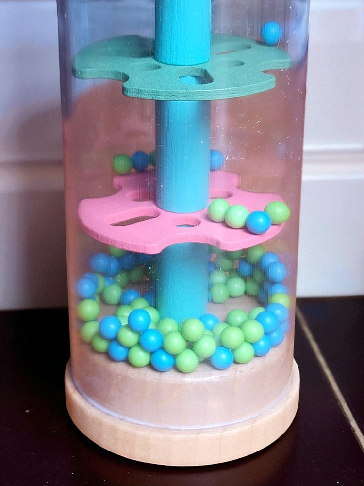 • Prosta w użyciu – potrząśnij, przekręć, obróć tubę i obserwuj dźwięk oraz ruch kuleczek.